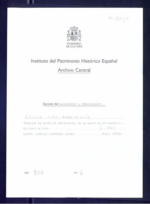 Proyecto de restauración de las cubiertas, ábside, muros, arbotantes y espadaña de la Iglesia de San Esteban de Ribas de Miño en O Saviñao (Lugo)
