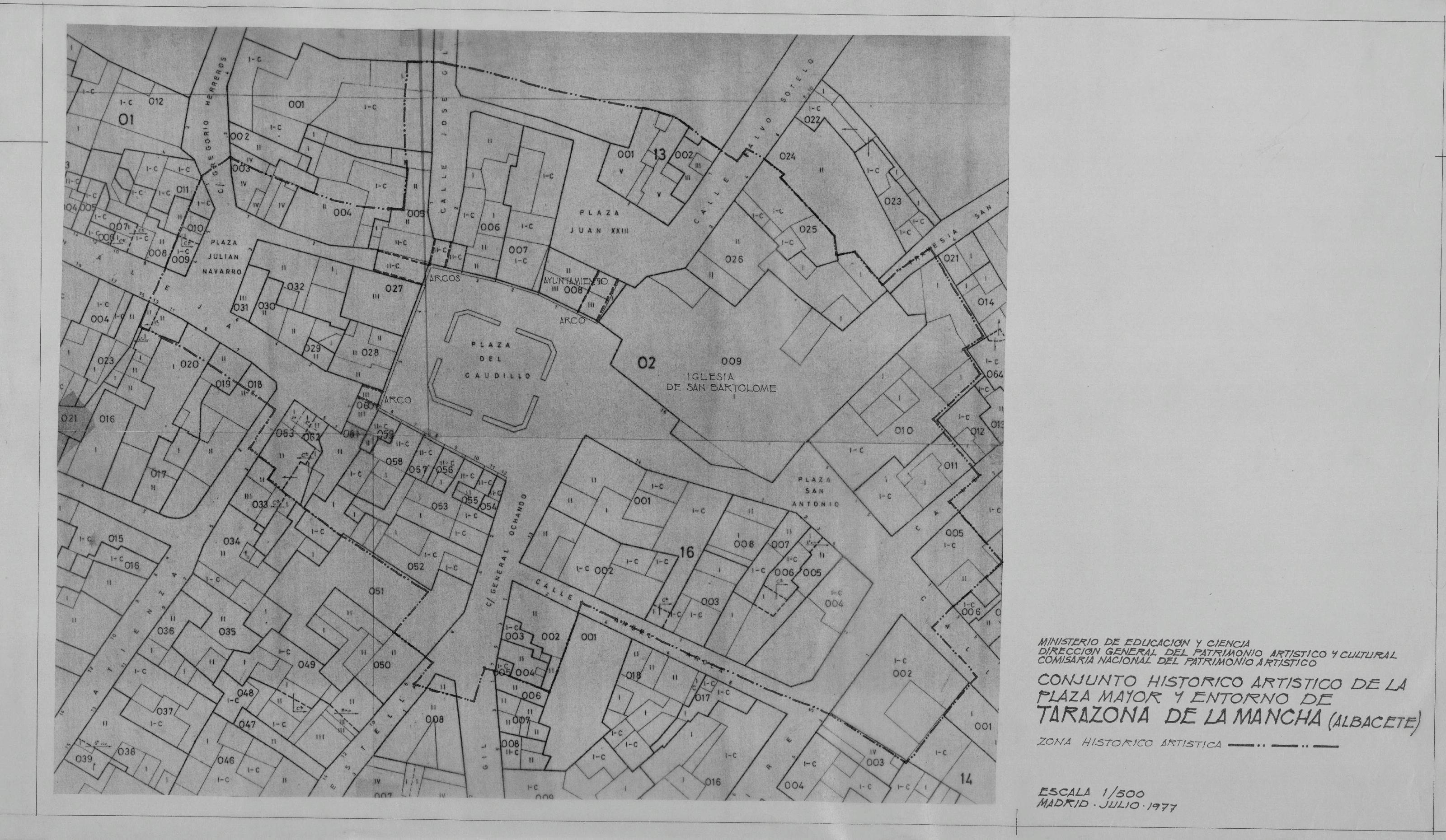 CONJUNTO HISTORICO ARTISTICO DE LA PLAZA MAYOR Y ENTORNO DE TARAZONA DE LA MANCHA: PLANTA DEL CONJUNTO HISTORICO ARTISTICO CON DENOMINACION DE MONUMENTOS