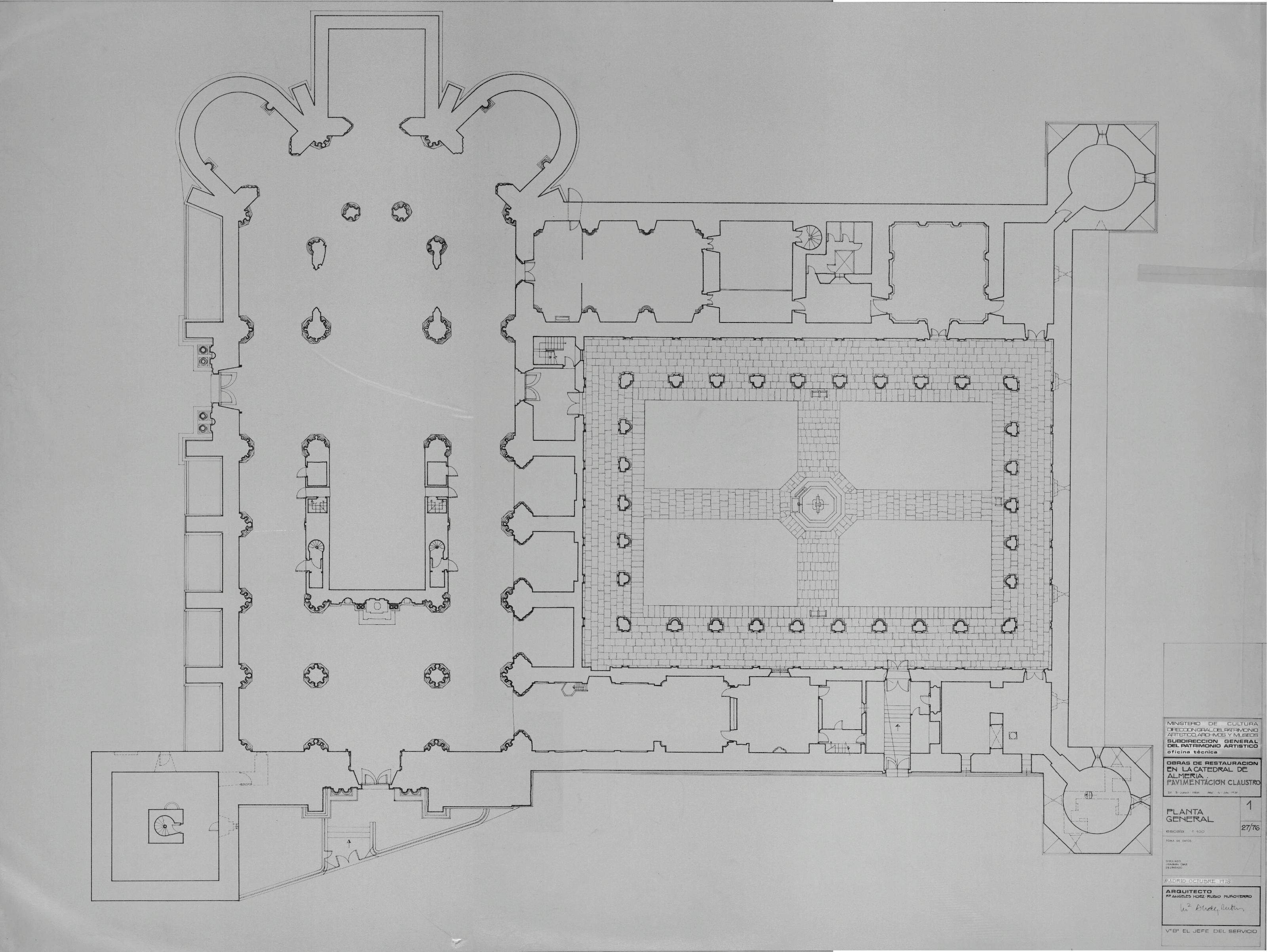 OBRAS DE RESTAURACION EN LA CATEDRAL DE ALMERIA: PLANTA GENERAL PAVIMENTACION CLAUSTROCon despiece de pavimento en zona de claustroSin cotas ni notas o leyenda