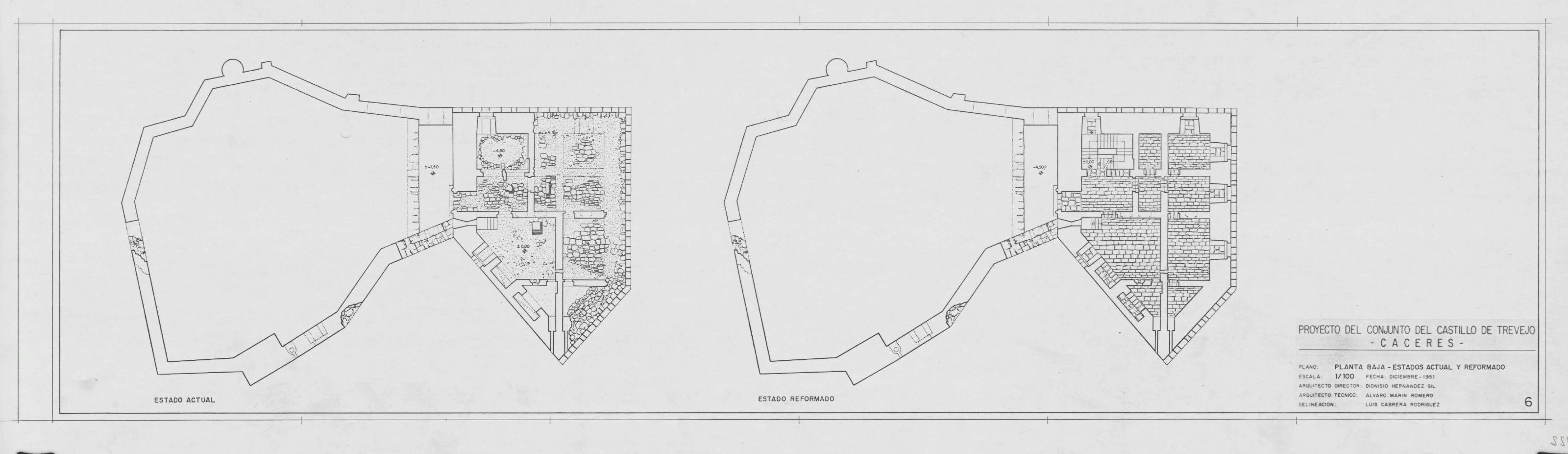 CASTILLO DE TREVEJO: PLANTA BAJA. ESTADOS ACTUAL Y REFORMADO