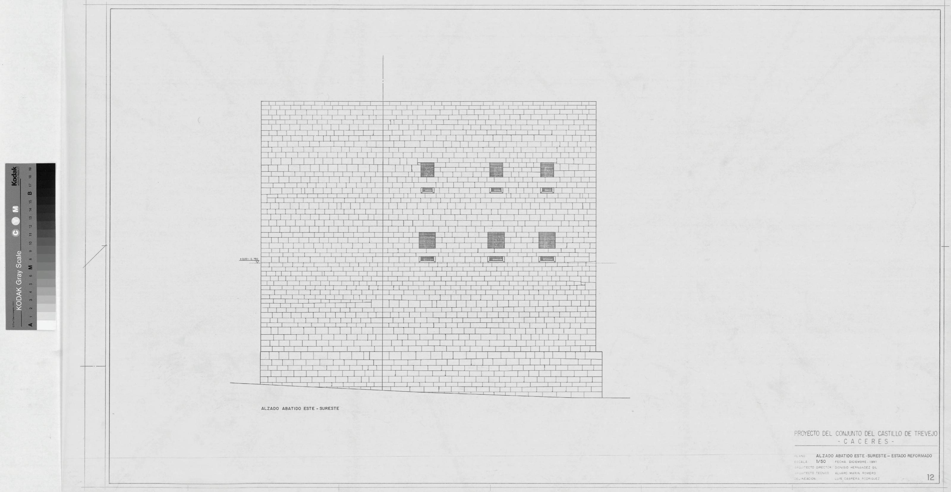 CASTILLO DE TREVEJO: ALZADO ABATIDO ESTE-SURESTE. ESTADO REFORMADO