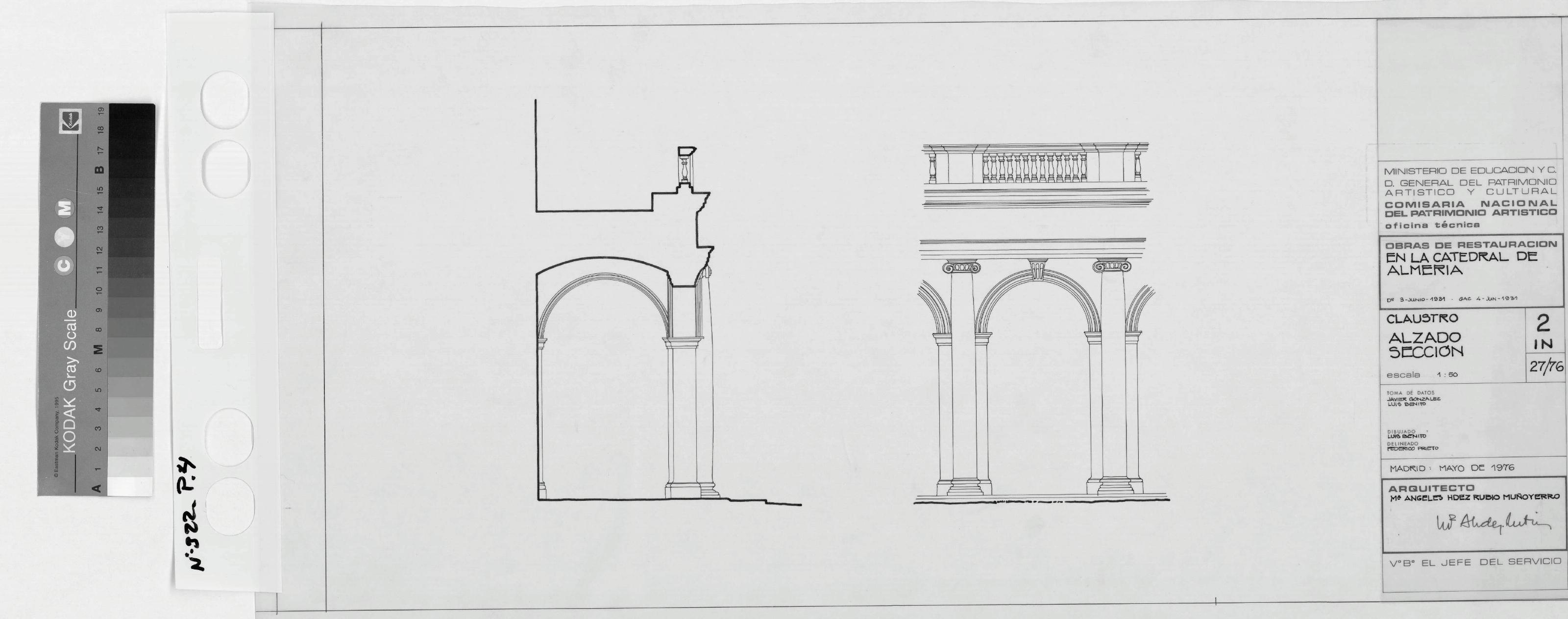 OBRAS DE RESTAURACION EN LA CATEDRAL DE ALMERIA: CLAUSTRO, ALZADO Y SECCIONUn fragmento del alzadoSin notas ni cotas