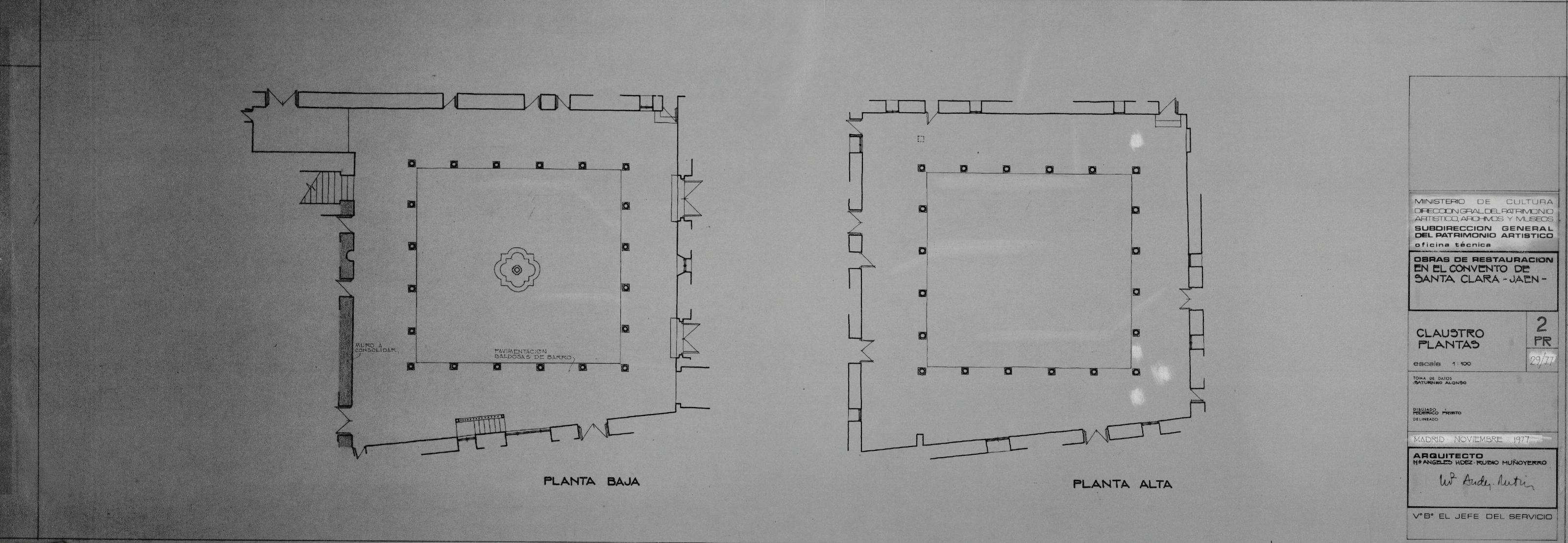 CONVENTO DE SANTA CLARA. - JAEN.: CLAUSTRO Y PLANTAS, Plano donde aparece marcada la zona de actuacion, plano sin cotas.