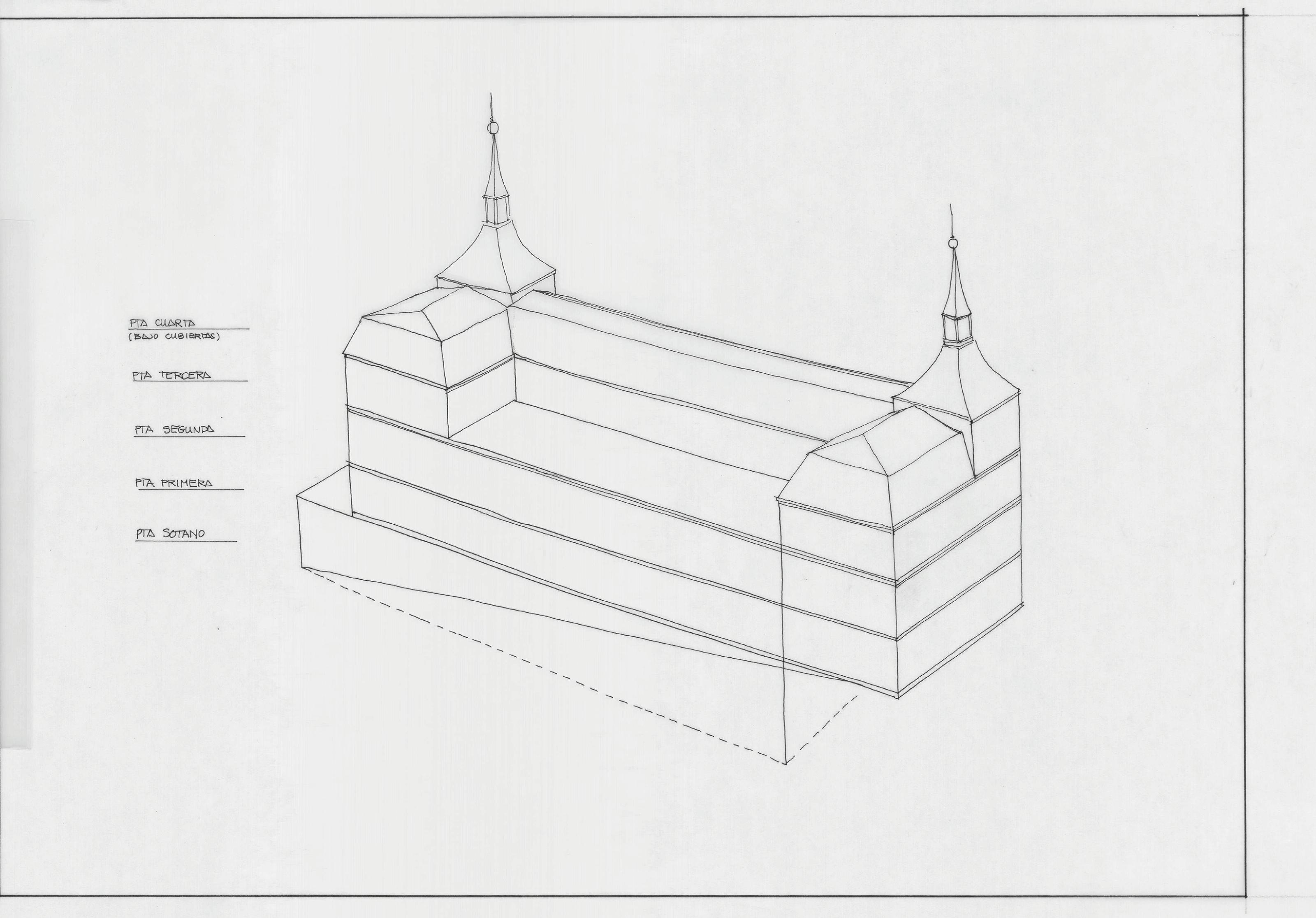 MUSEO DEL EJERCITO: CROQUIS PERSPECTIVA CON SEÑALIZACION DE LAS PLANTAS