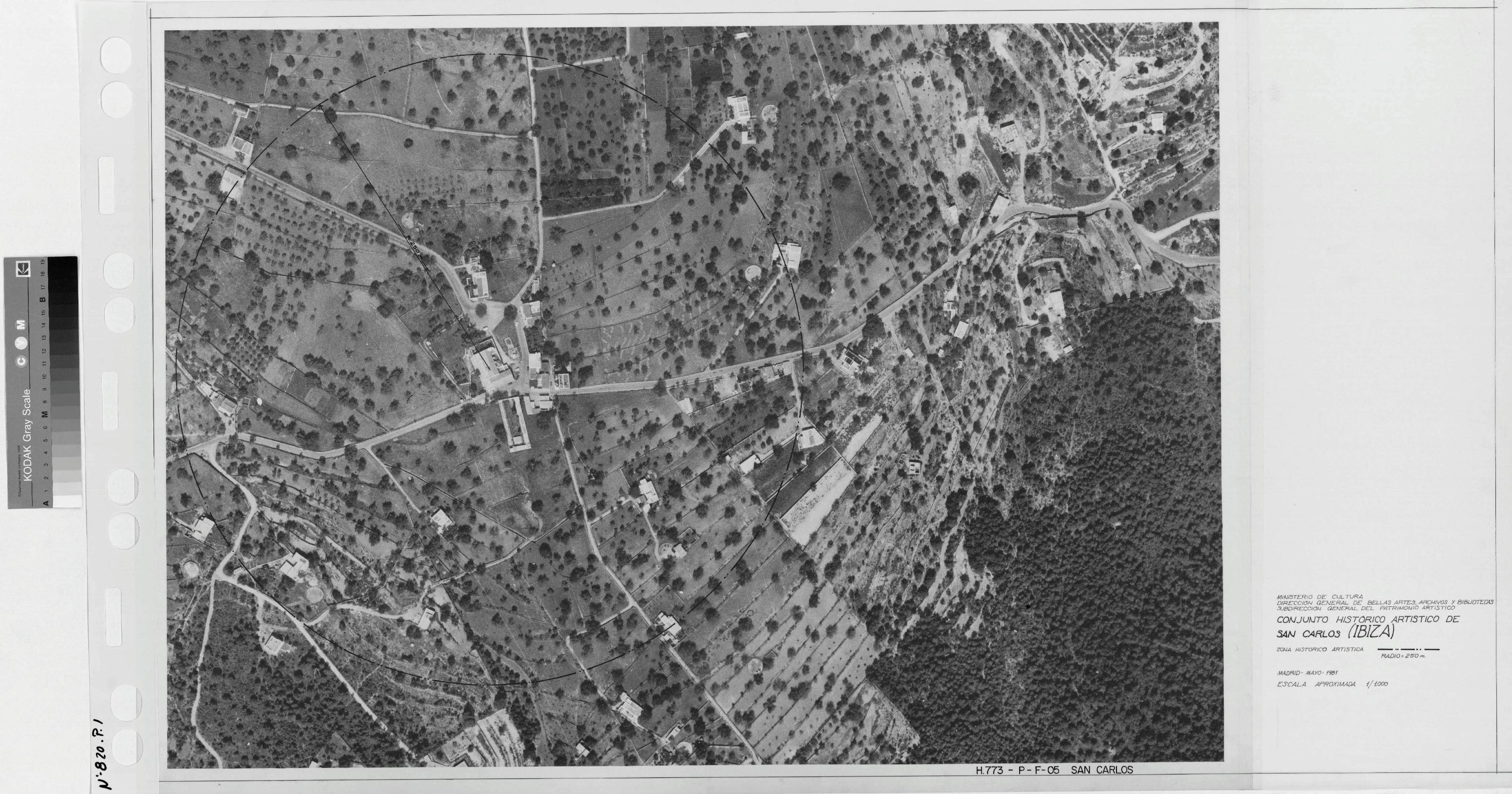 CONJUNTO HISTORICO ARTISTICO DE SAN CARLOS - BIZA-: VISTA AEREA. Este plano marca una zona historica artistica, en un radio de 250m.