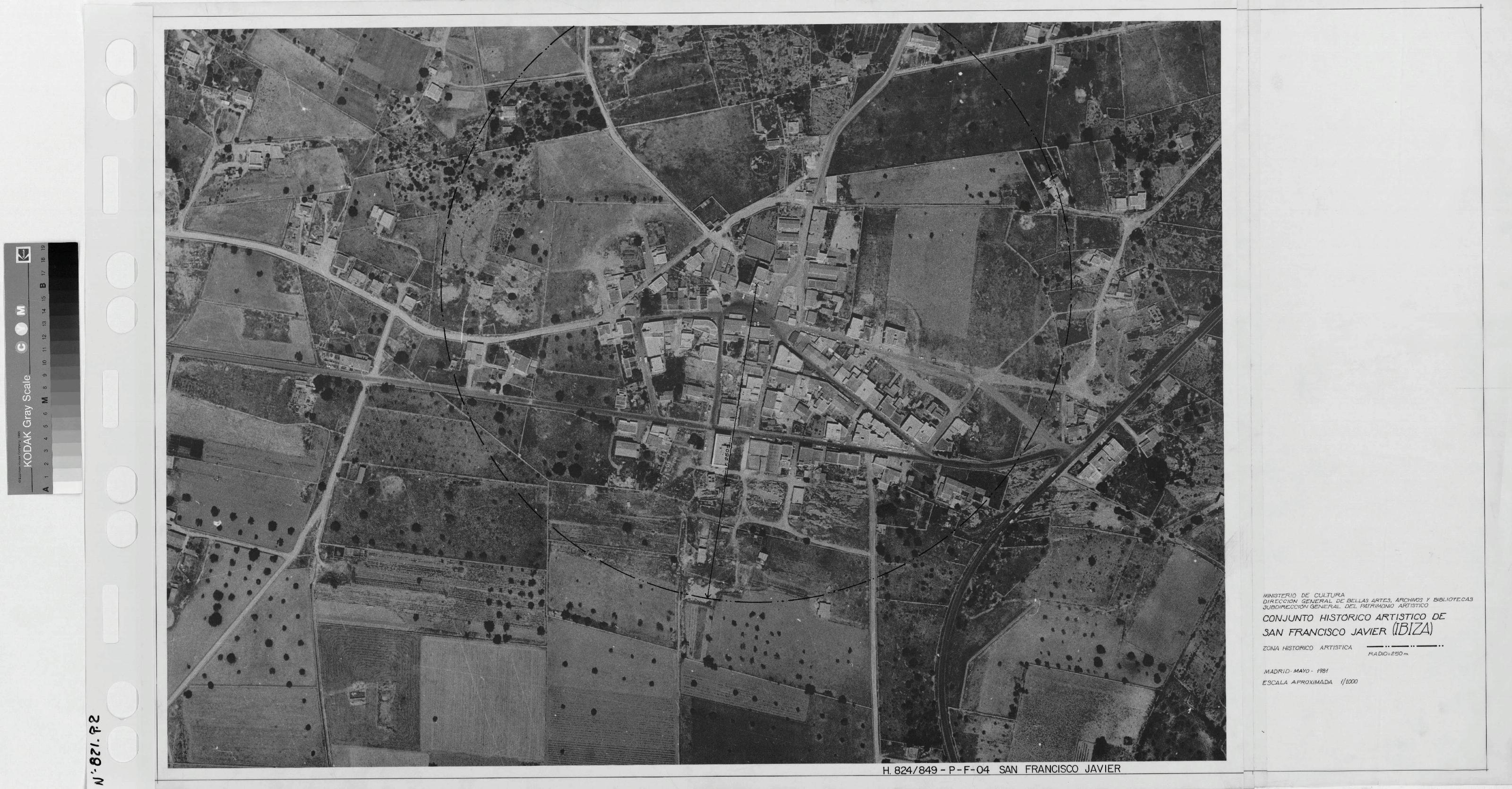 CONJUNTO HISTORICO ARTISTICO DE SAN FRANCISCO JAVIER -IBIZA-: VISTA AEREA. Este plano marca una zona historica artistica, en un radio de 250m.