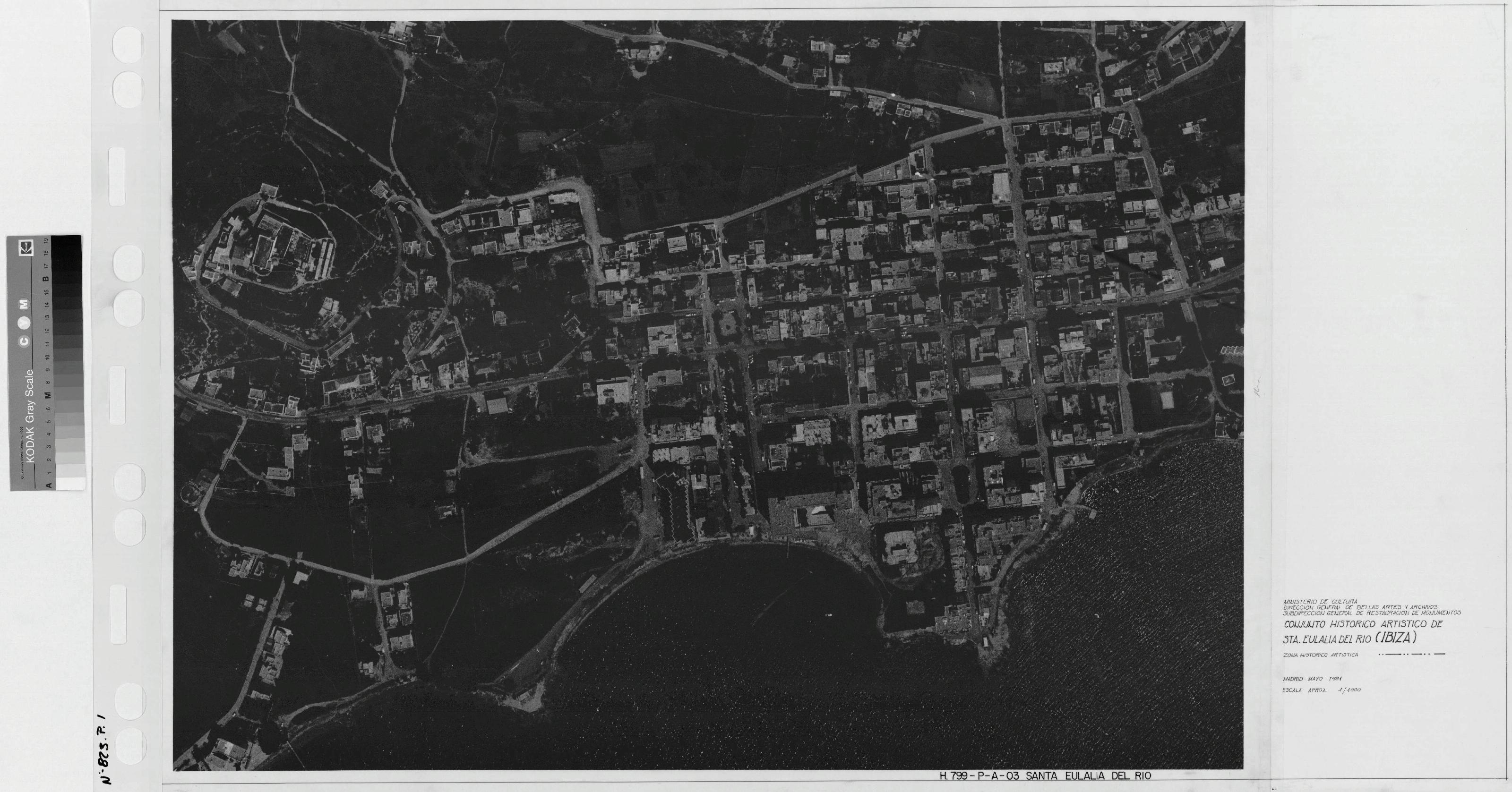CONJUNTO HISTORICO ARTISTICO DE SANTA EULALIA DEL RIO -IBIZA-: VISTA AEREA. Este plano marca una zona historica artistica,