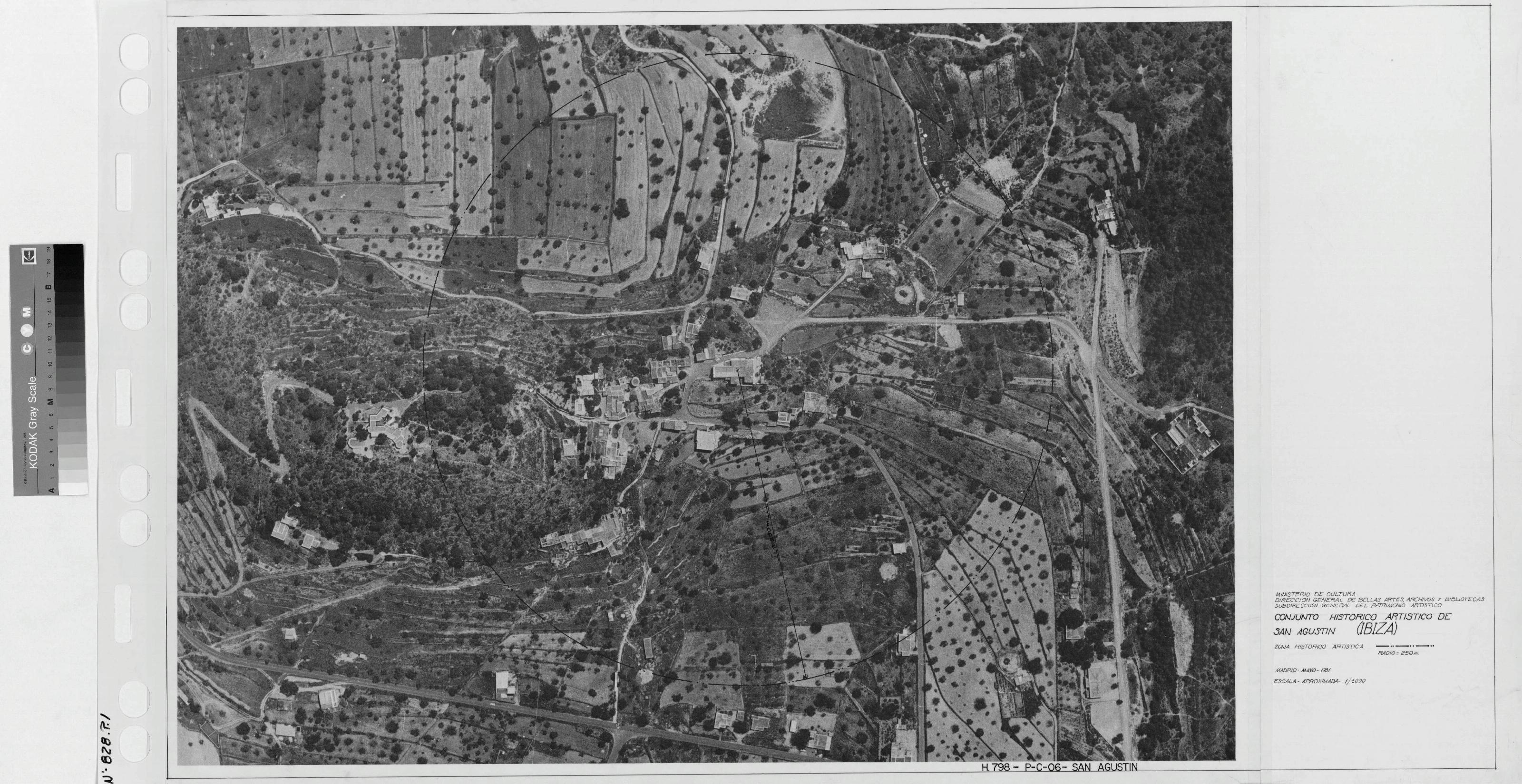 CONJUNTO HISTORICO ARTISTICO DE SAN AGUSTIN -IBIZA-: VISTA AEREA. Este plano marca una zona historica artistica, de un radio de 250m.