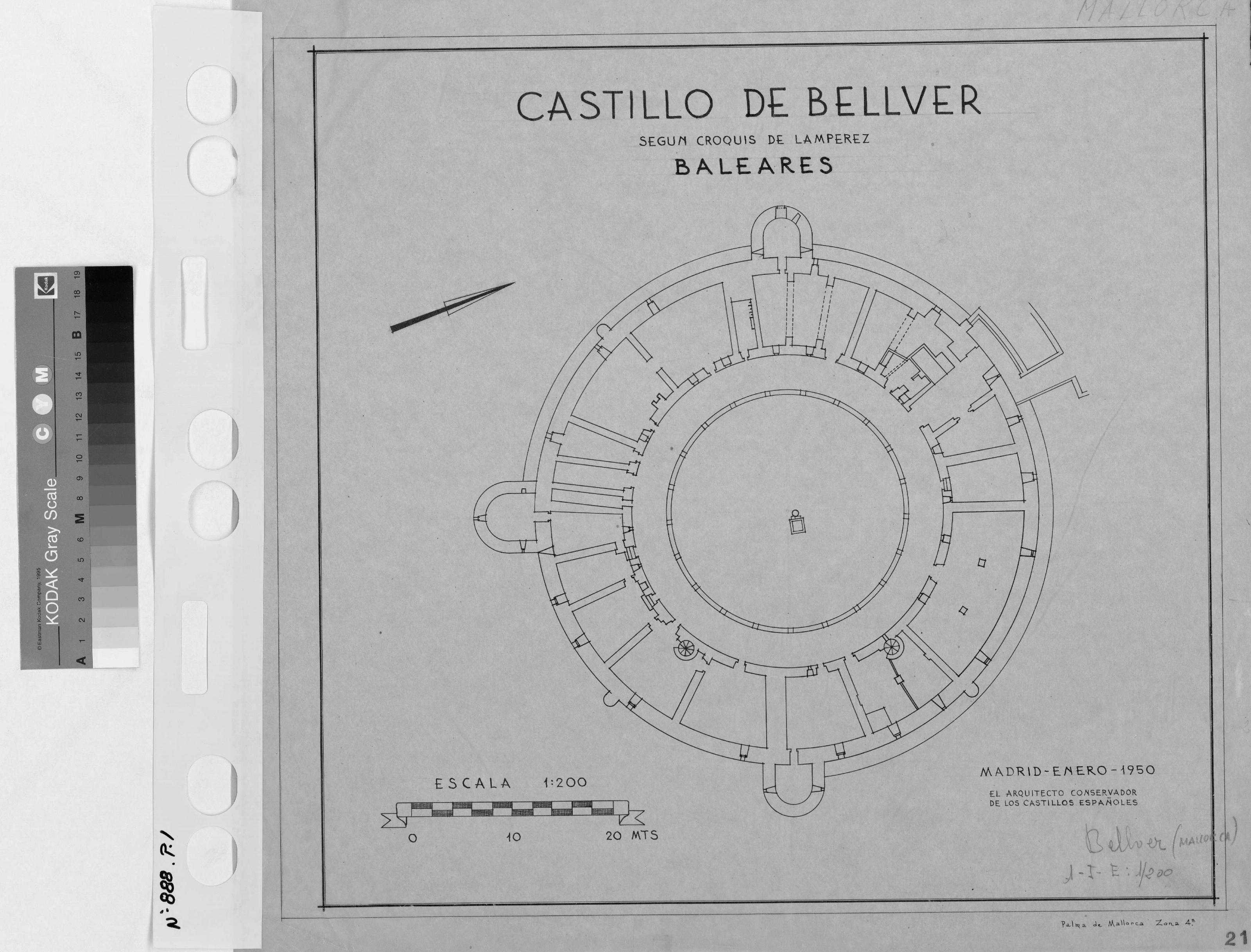 CASTILLO DE BELLVER -BALEARES-: PLANTA GENERAL, según croquis de Lamperez. Este plano es esquematico, marca la distribucion de la planta los torreones y el patio de armas. Plano sin cotas