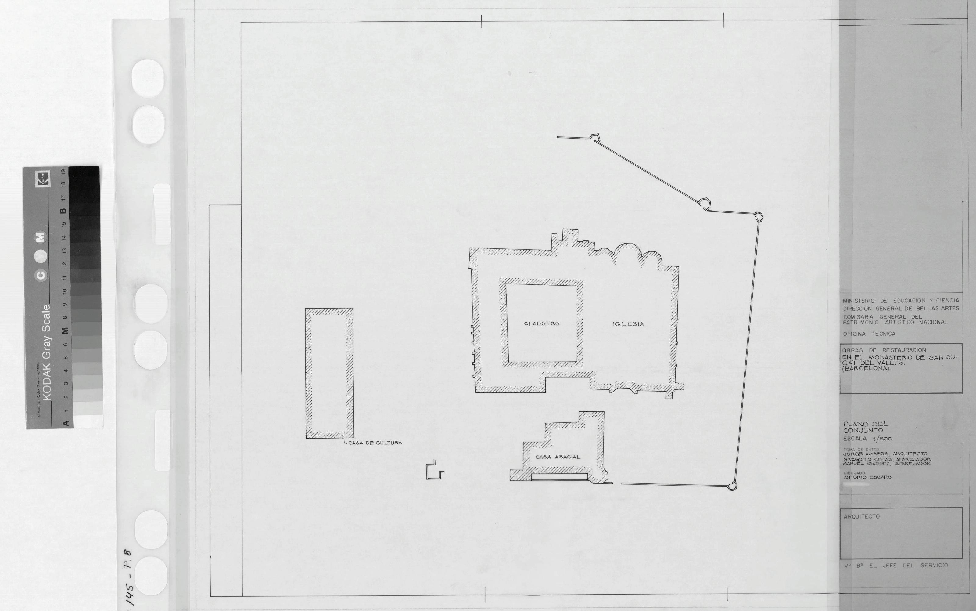 MONASTERIO DE SAN CUGAT DE VALLES- BARCELONA-: PLANO DEL CONJUNTO. Planta general del recinto, nos marca la situacion de cada dependencia y tambien aparece dibujada parte de la muralla del mismo.plano sin cotas.