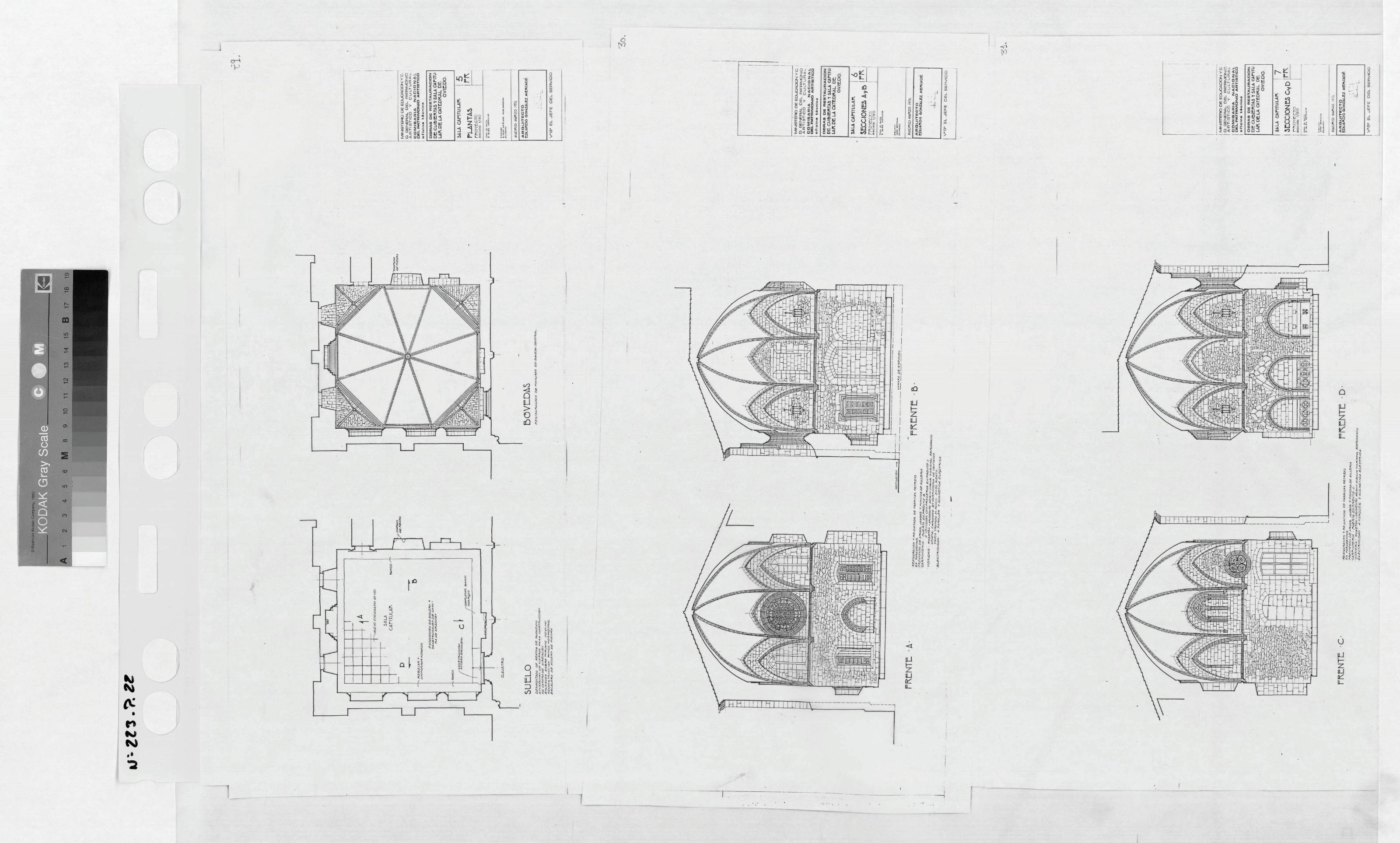 CATEDRAL BASILICA DEL SALVADOR- SANTA IGLESIA CATEDRAL DE OVIEDO: SALA CAPITULAR, PLANTAS Y SECCIONES CON ESPECIFICACION DE ACTUACIONES