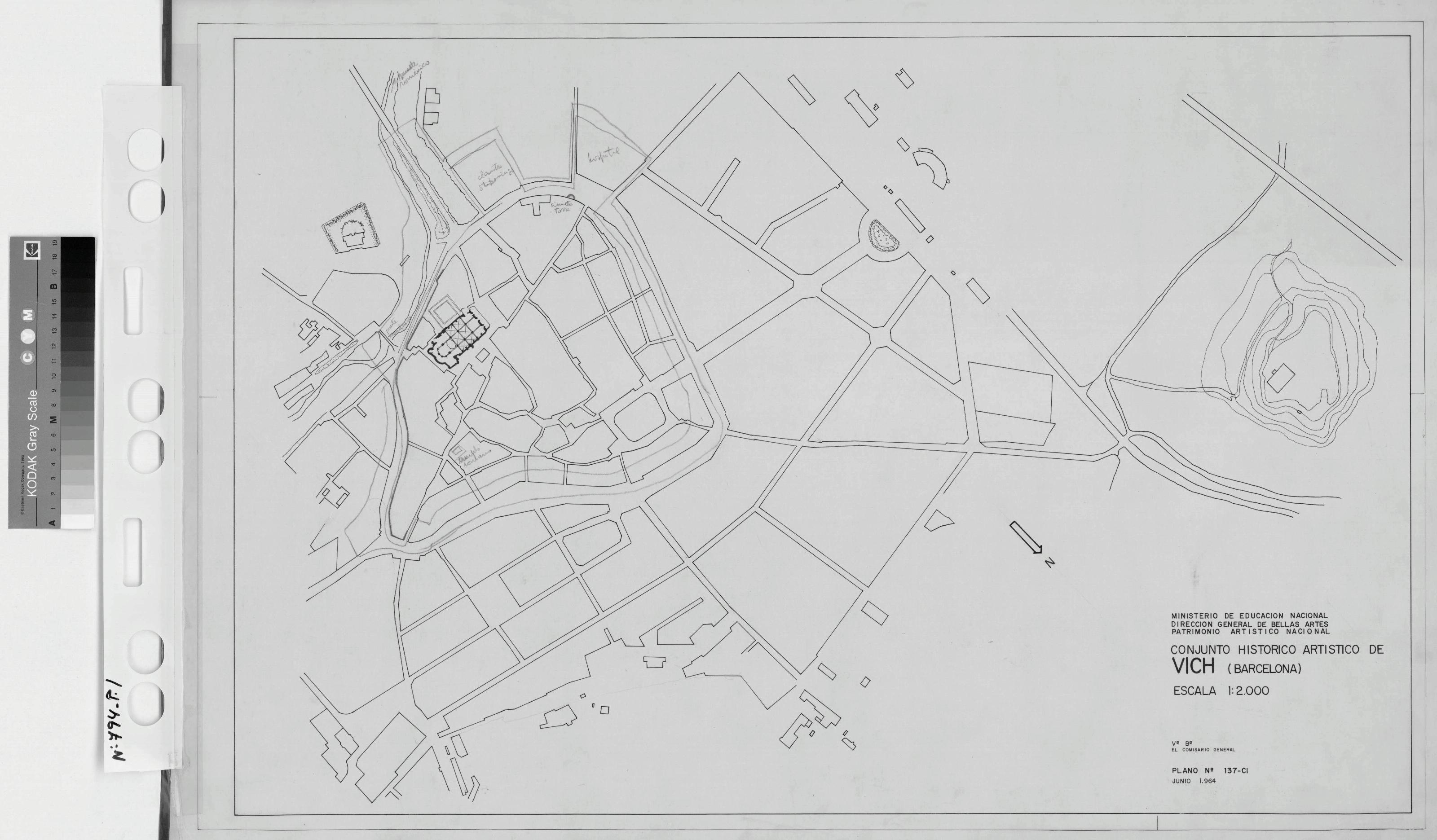 CONJUNTO HISTORICO ARTISTICO DE VICH -BARCELONA-: PLANO DE SITUACION O EMPLAZAMIENTO. Plano sin cotas, sin nomenclatura de calles y sin marcar zona del conjunto.