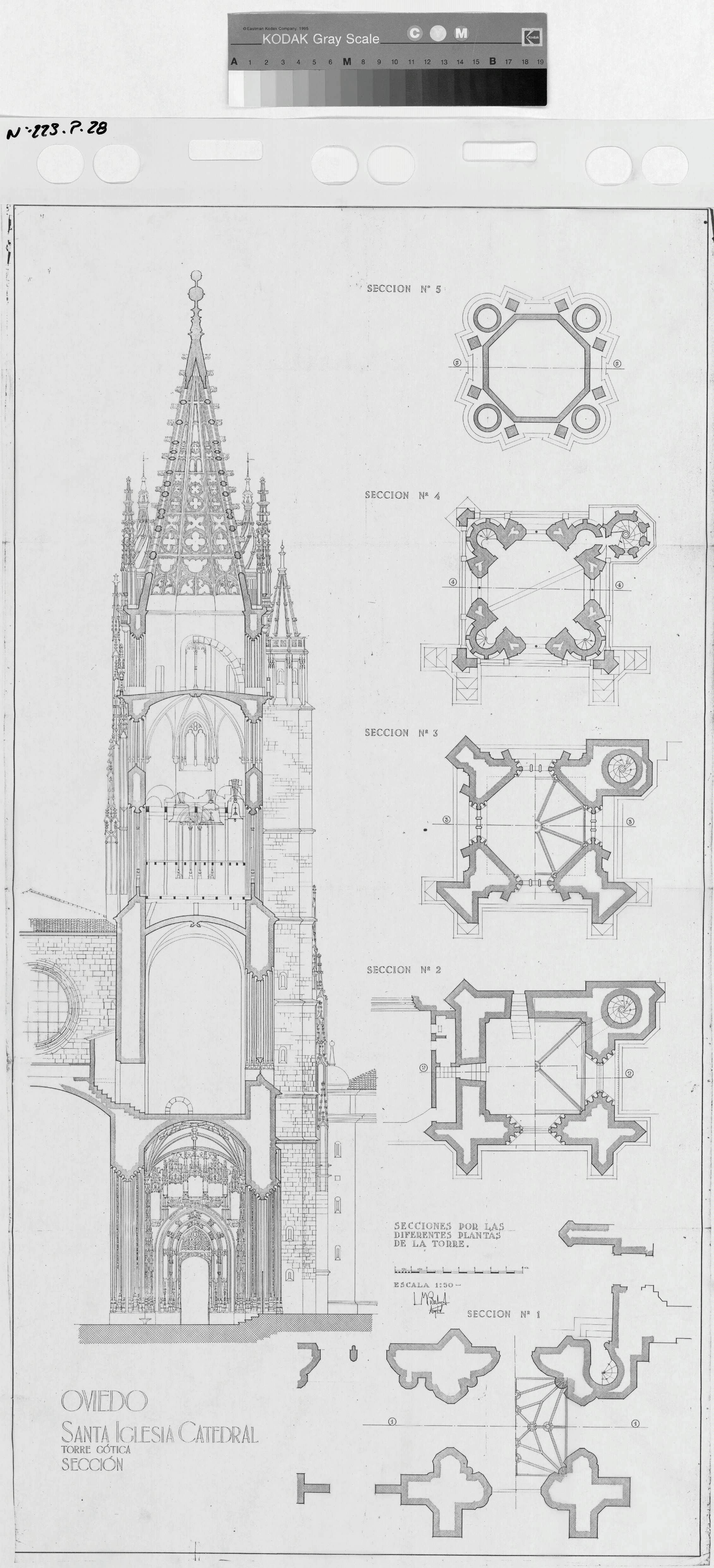 CATEDRAL BASILICA DEL SALVADOR- SANTA IGLESIA CATEDRAL DE OVIEDO: TORRE GOTICA- SECCION TORRE- SECCIONES DE LAS DISTINTAS PLANTAS QUE COMPONEN LA TORRE