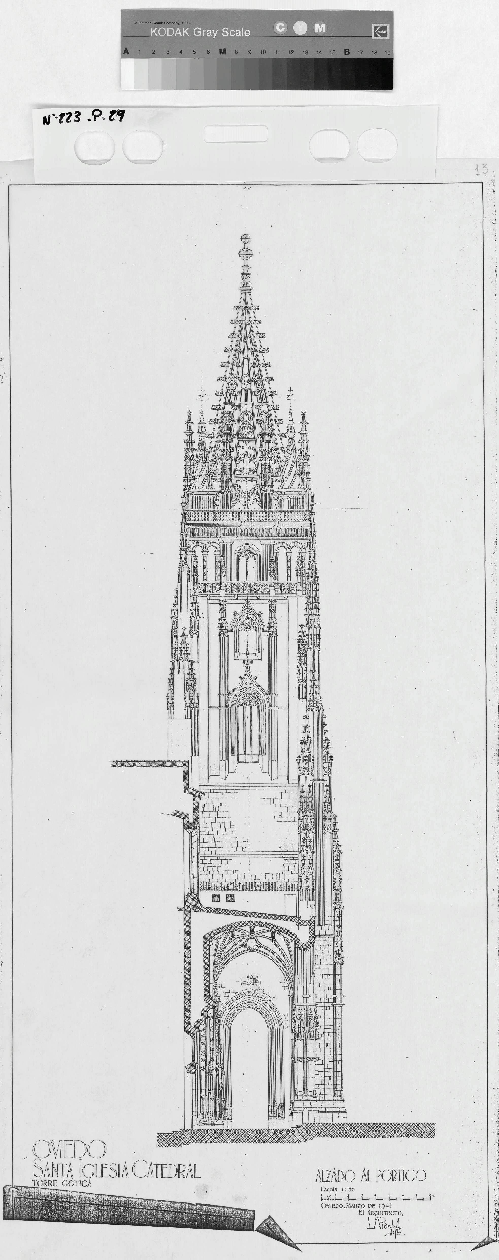 CATEDRAL BASILICA DEL SALVADOR- SANTA IGLESIA CATEDRAL DE OVIEDO: TORRE GOTICA- ALZADO AL PORTICO