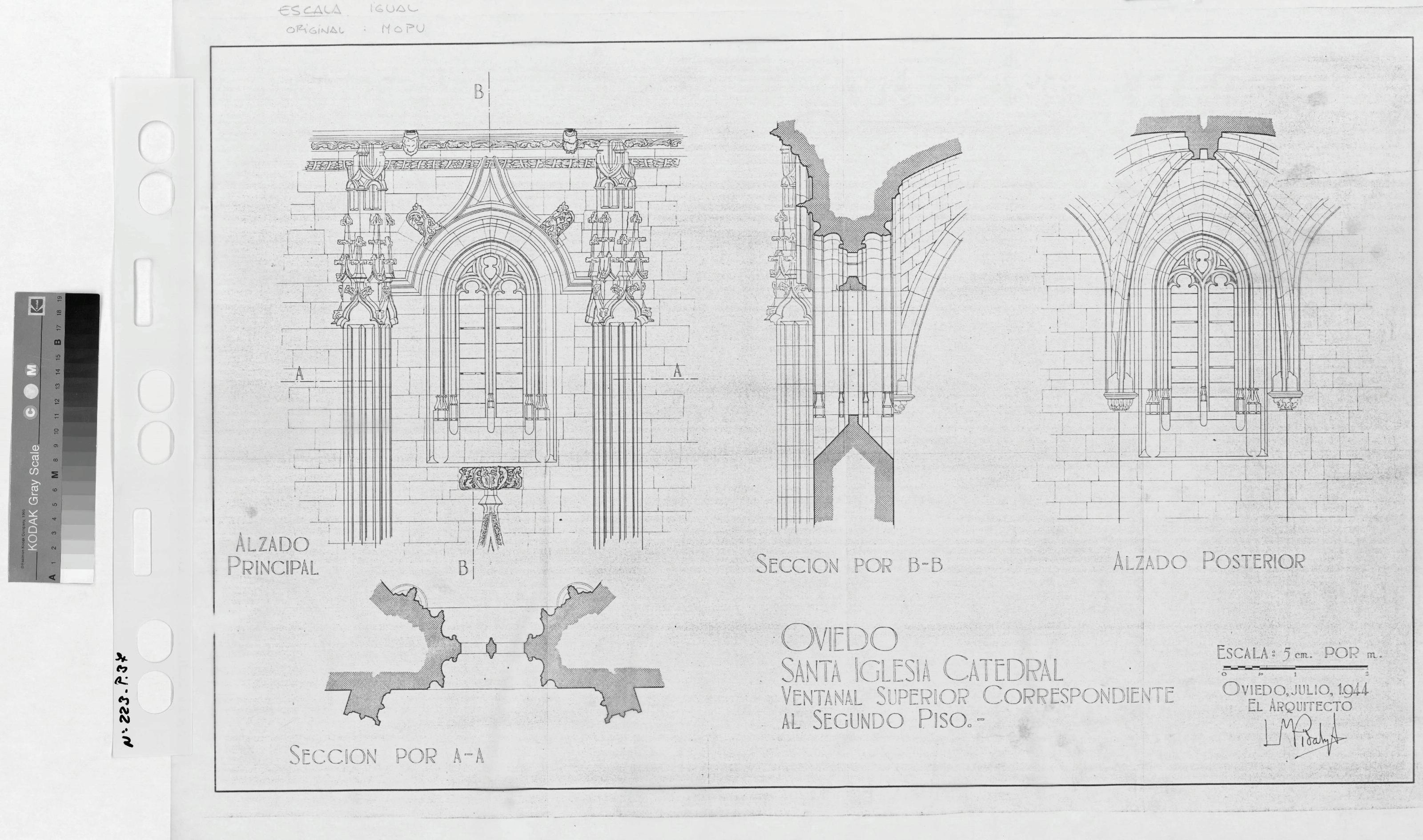 CATEDRAL BASILICA DEL SALVADOR- SANTA IGLESIA CATEDRAL DE OVIEDO: VENTANAL SUPERIOR CORRESPONDIENTE AL SEGUNDO PISO- DETALLES EN PLANTA SECCION Y ALZADO