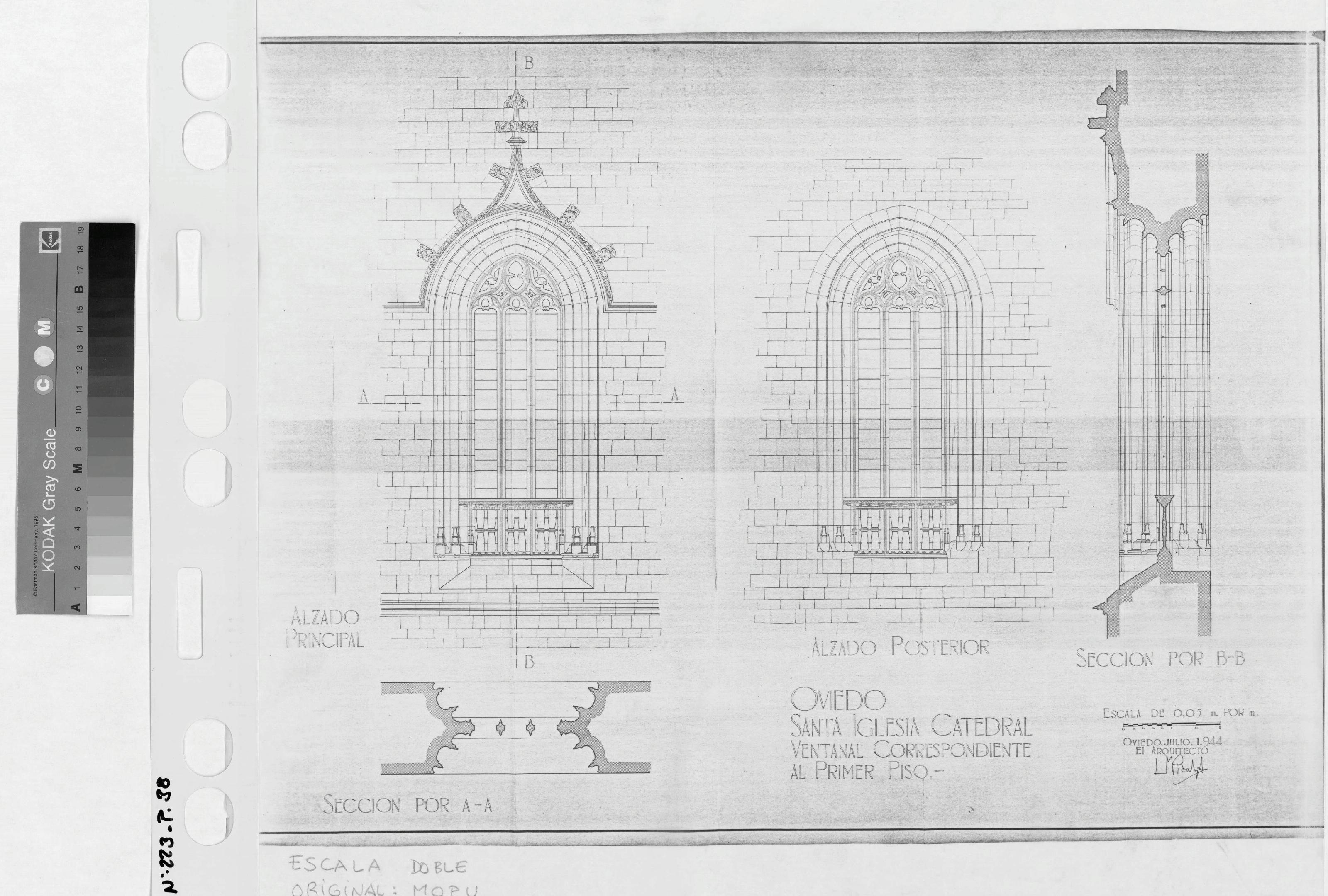 CATEDRAL BASILICA DEL SALVADOR- SANTA IGLESIA CATEDRAL DE OVIEDO: VENTANAL CORRESPONDIENTE AL PRIMER PISO- DETALLES EN PLANTA SECCION Y ALZADO