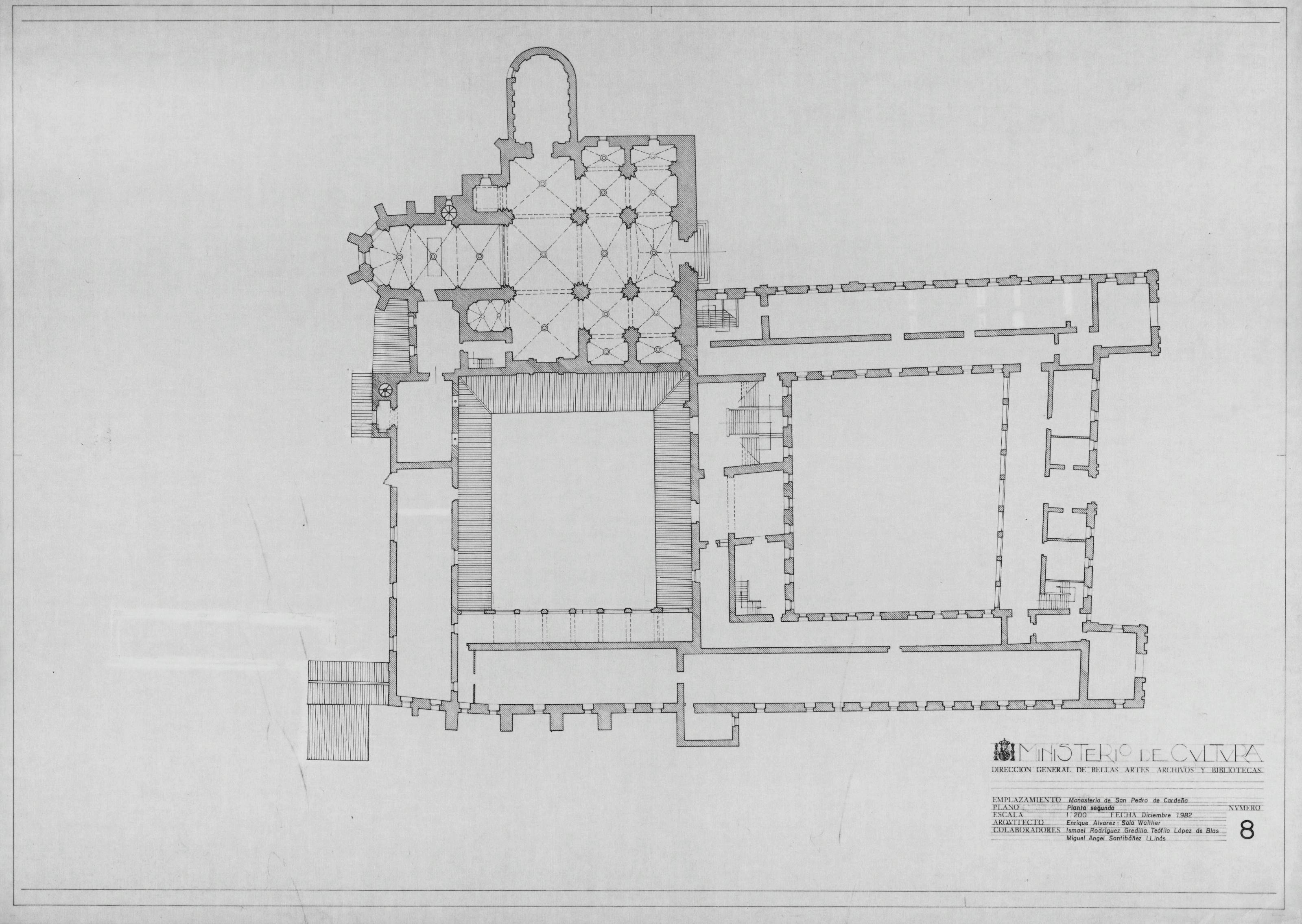 MONASTERIO DE SAN PEDRO DE CARDEÑA.- BURGOS-: PLANTA SEGUNDA . Plano sin cotas , copia en vegetal.planos realizados por personas contratadas por el INEM.