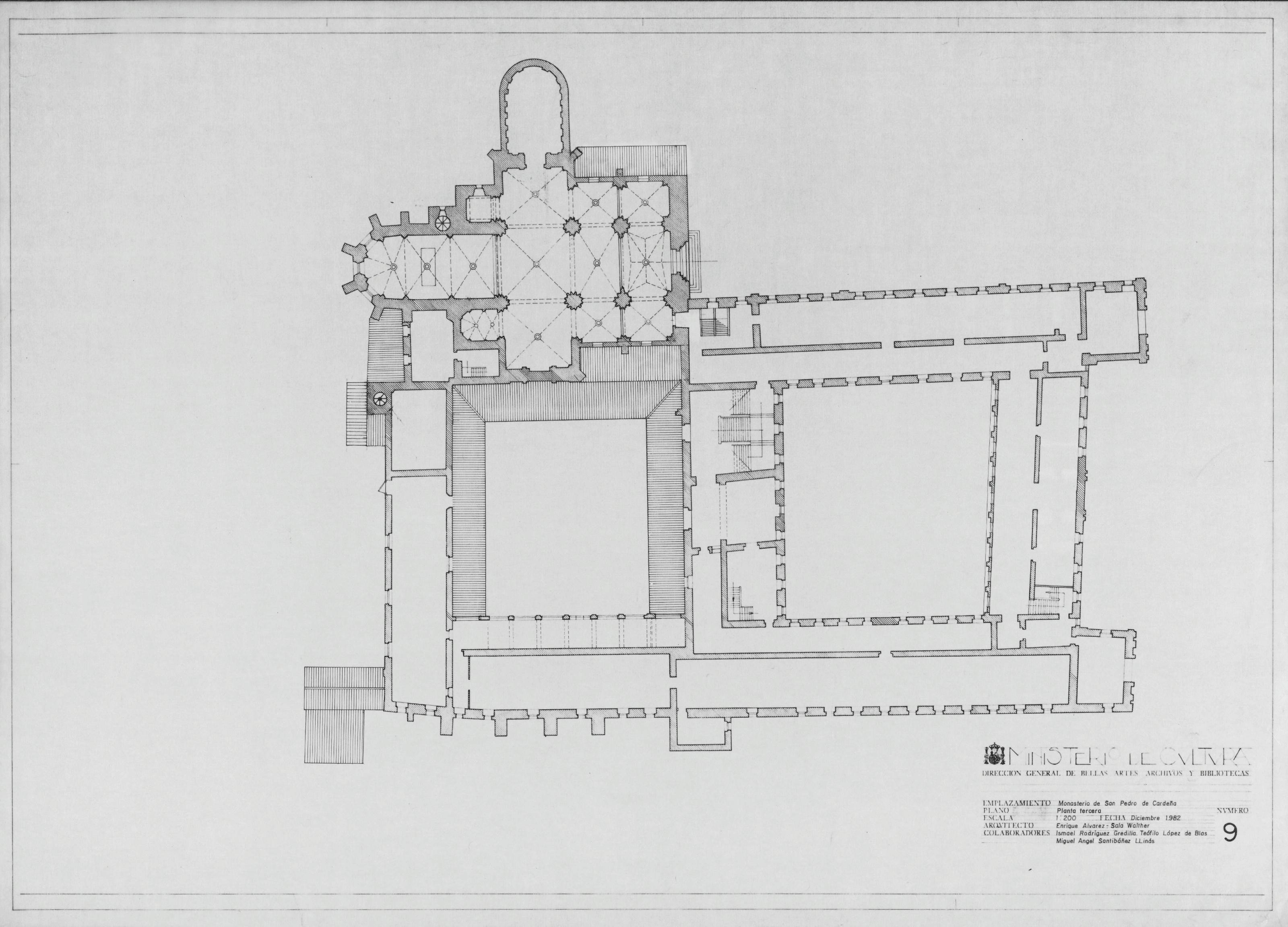 MONASTERIO DE SAN PEDRO DE CARDEÑA.- BURGOS-: PLANTA TERCERA. Plano sin cotas , copia en vegetal. Planos realizados por personas contratas por el INEM.