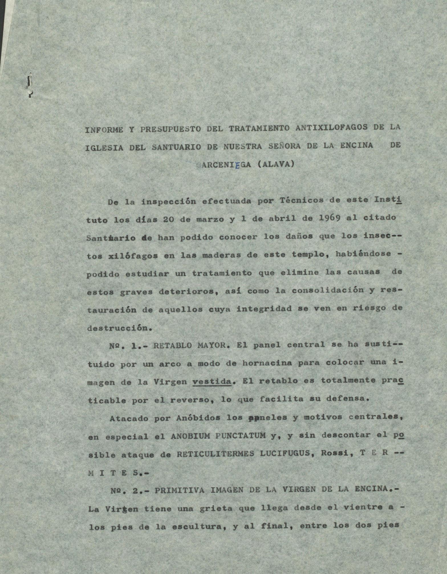 Informe sobre el tratamiento antixilófago en la Iglesia de Nuestra Señora de la Encina de Arceniega (Álava)