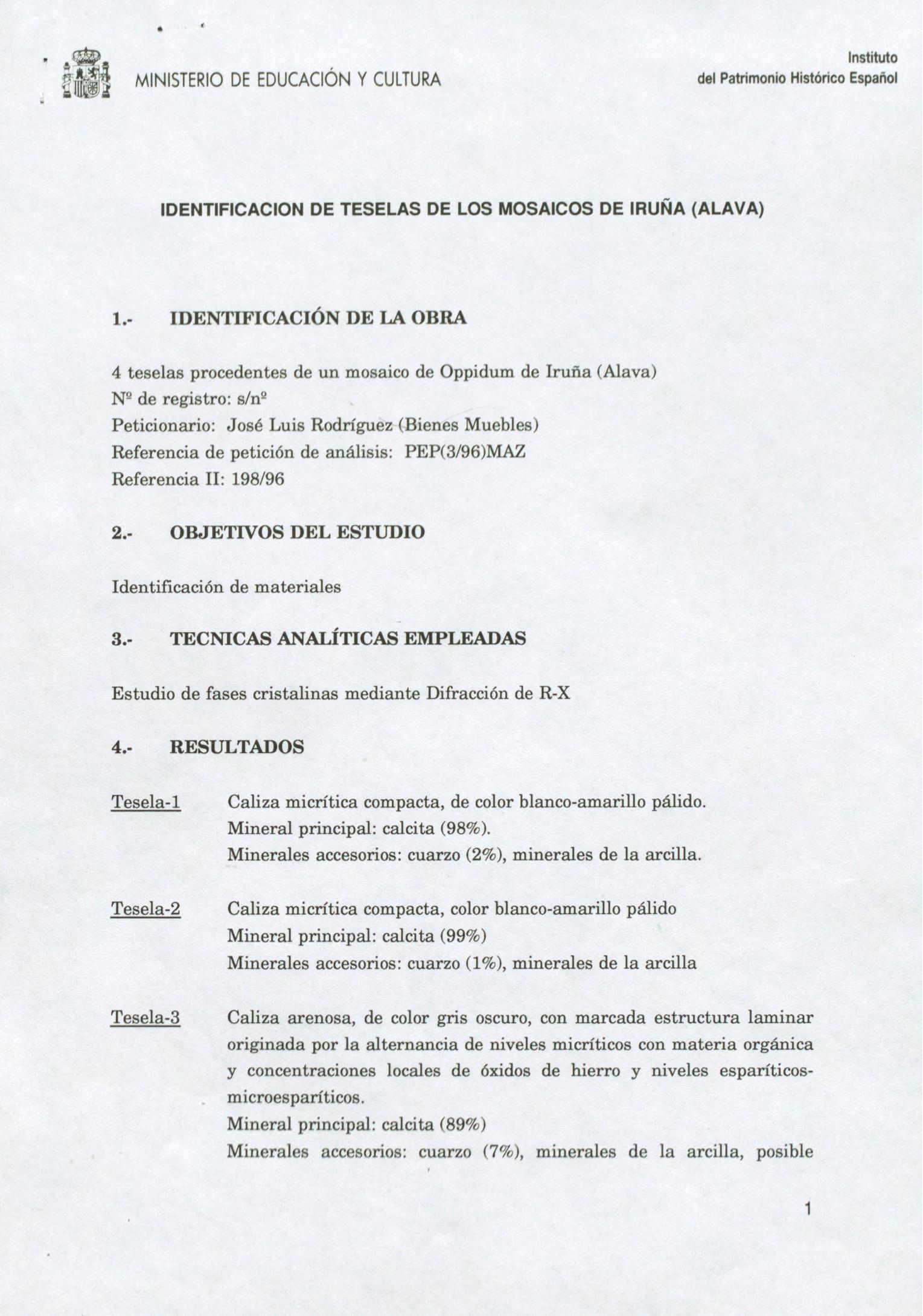 Informe sobre análisis de teselas de dos mosaicos del yacimiento del Opiddum de Iruña (Álava)