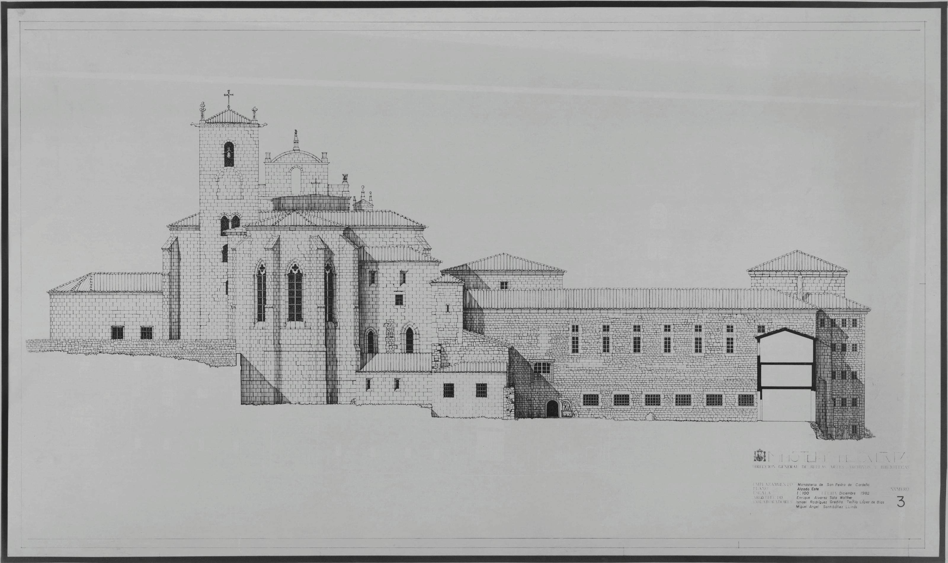 MONASTERIO DE SAN PEDRO DE CARDEÑA.- BURGOS-: ALZADO ESTE. Copia en poliester, plano sin cotas Planos realizados por personas contratadas por el INEM.