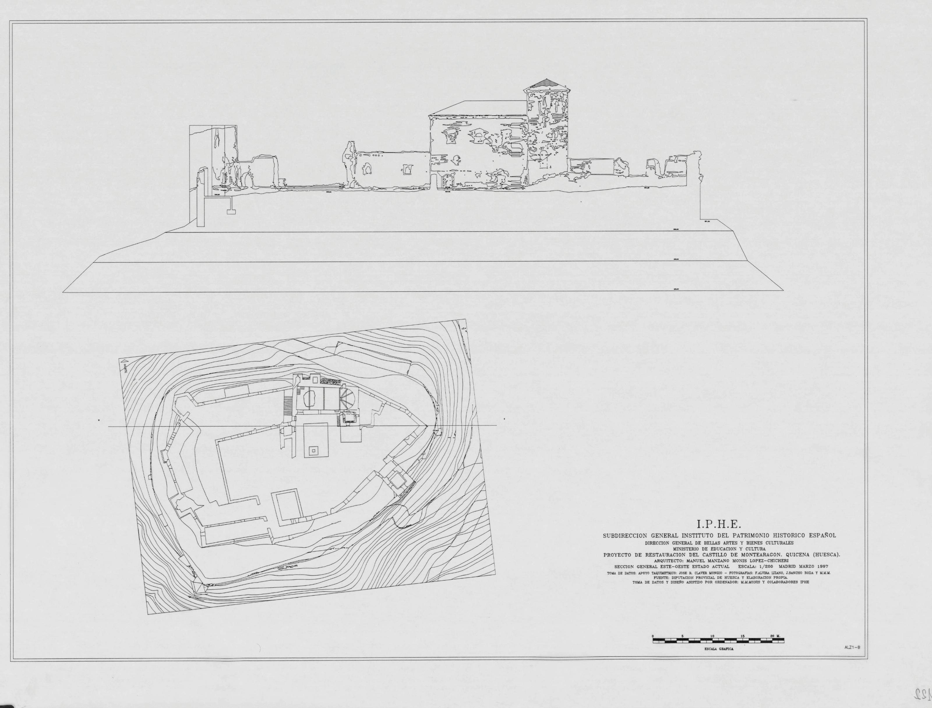 CATILLO DE MONTEARAGON: SECCION GENERAL ESTE-OESTE. ESTADO ACTUAL