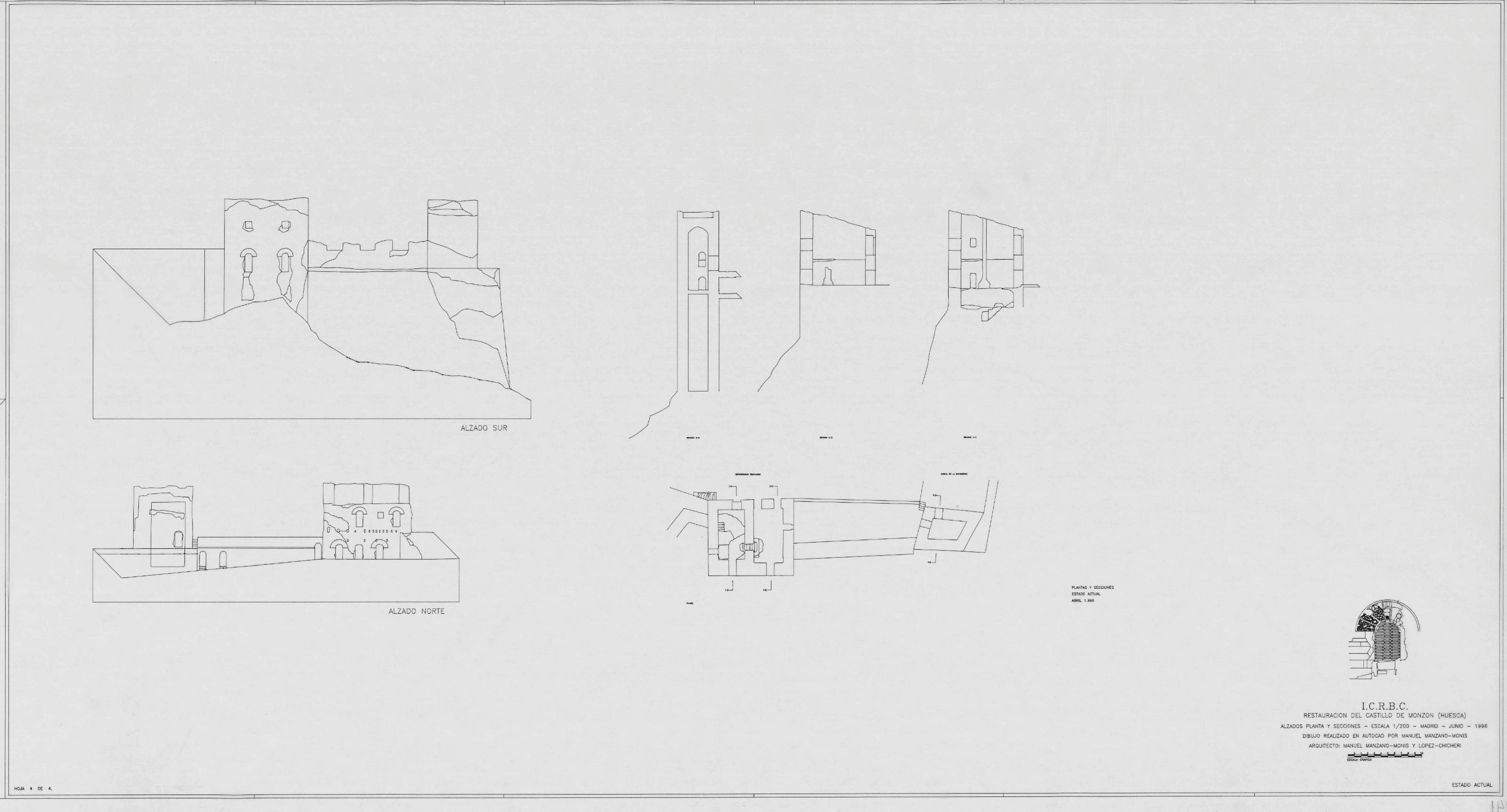 CASTILLO DE MONZON: ALZADOS, PLANTA Y SECCIONES