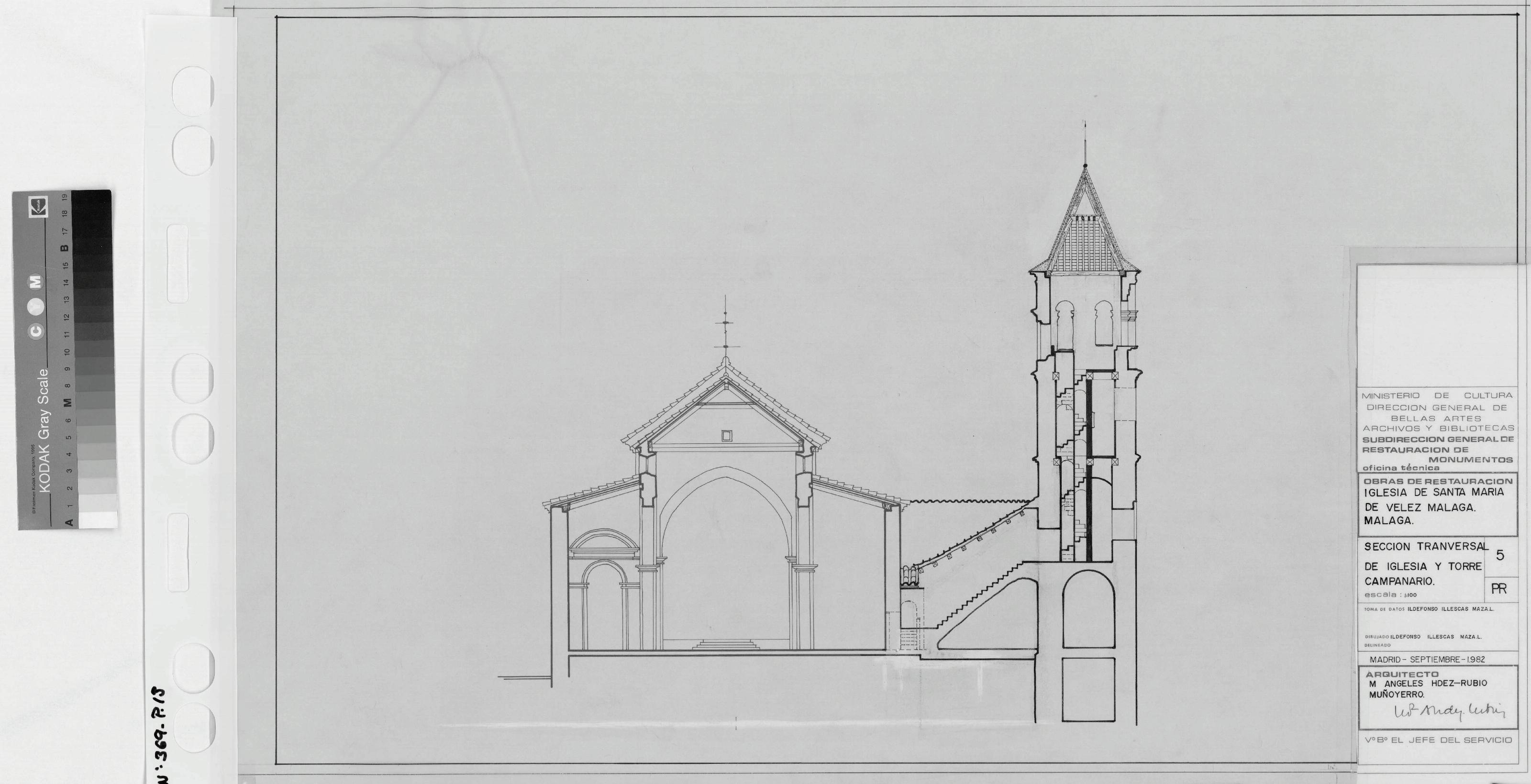 IGLESIA DE SANTA MARIA VELEZ MALAGA: SECCION TRANSVERSAL IGLESIA Y TORRE