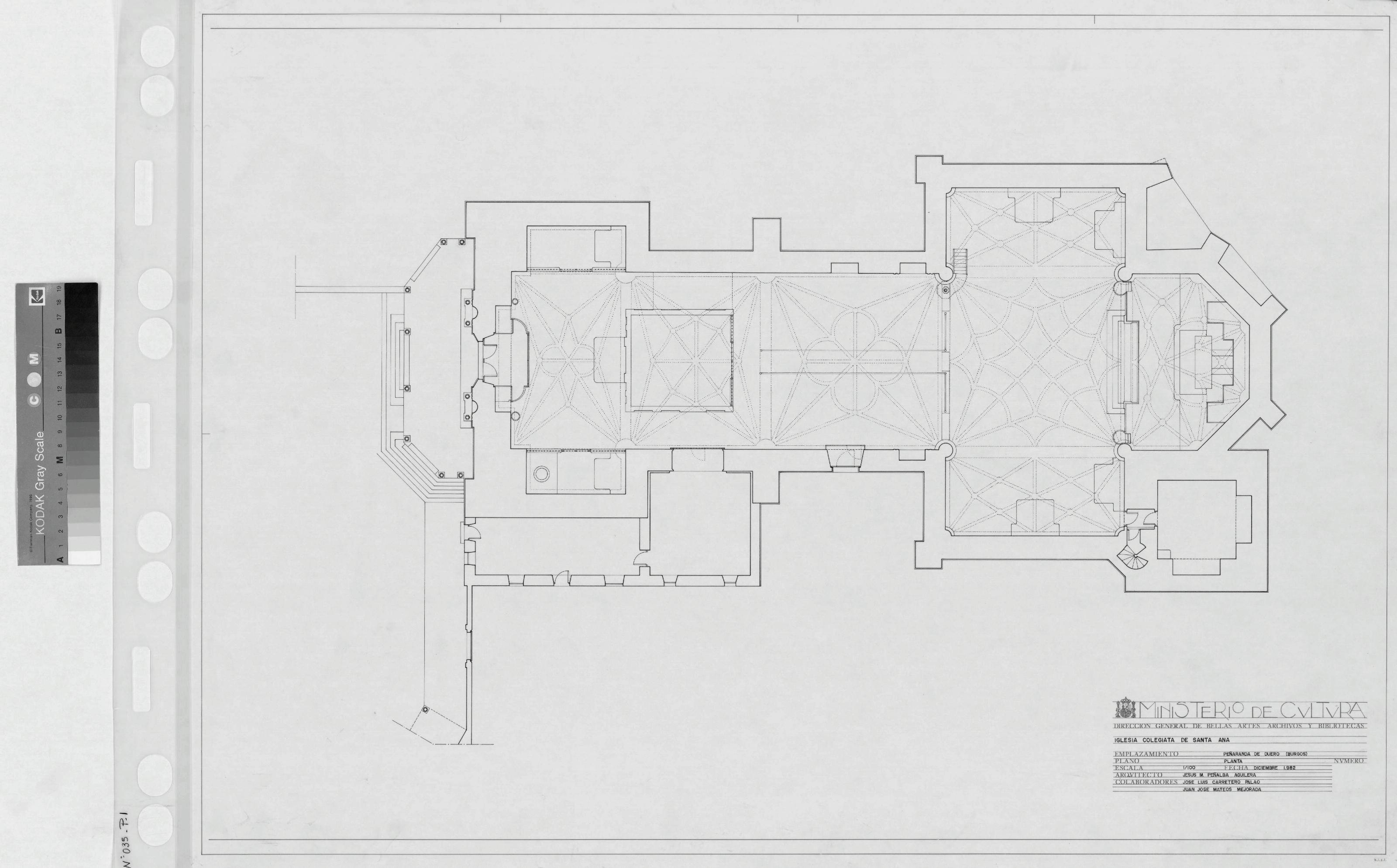 IGLESIA COLEGIATA DE SANTA ANA -BURGOS -: PLANTA GENERAL.planta con proyeccion de bovedas y techos, plano sin cotas. Planos realizados por personas contratadas por el INEM.