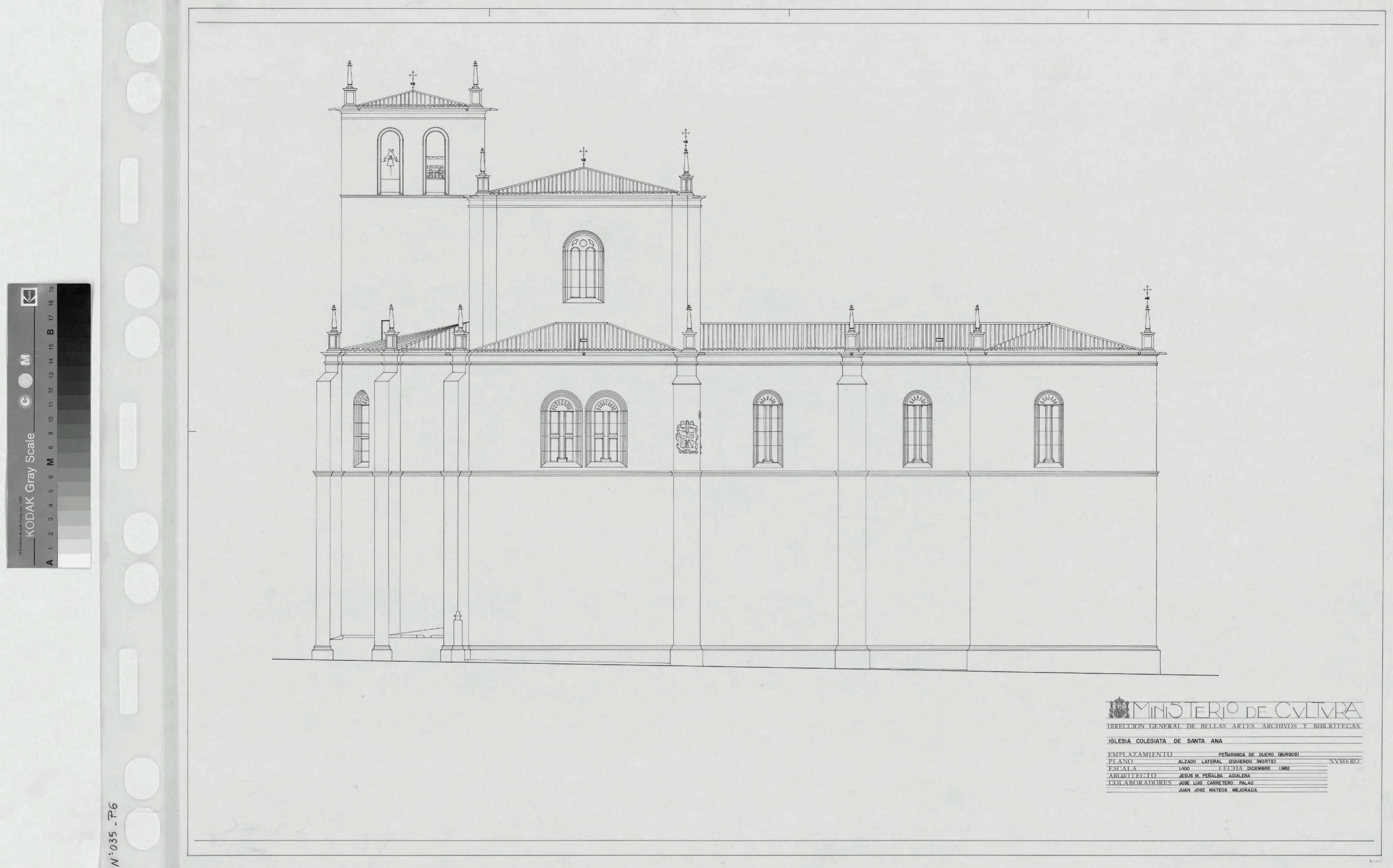 IGLESIA COLEGIATA DE SANTA ANA -BURGOS -: ALZADO LATERAL IZQUIERDO NORTE Plano de fachada detallado Planos realizados por personas contratadas por el INEM.