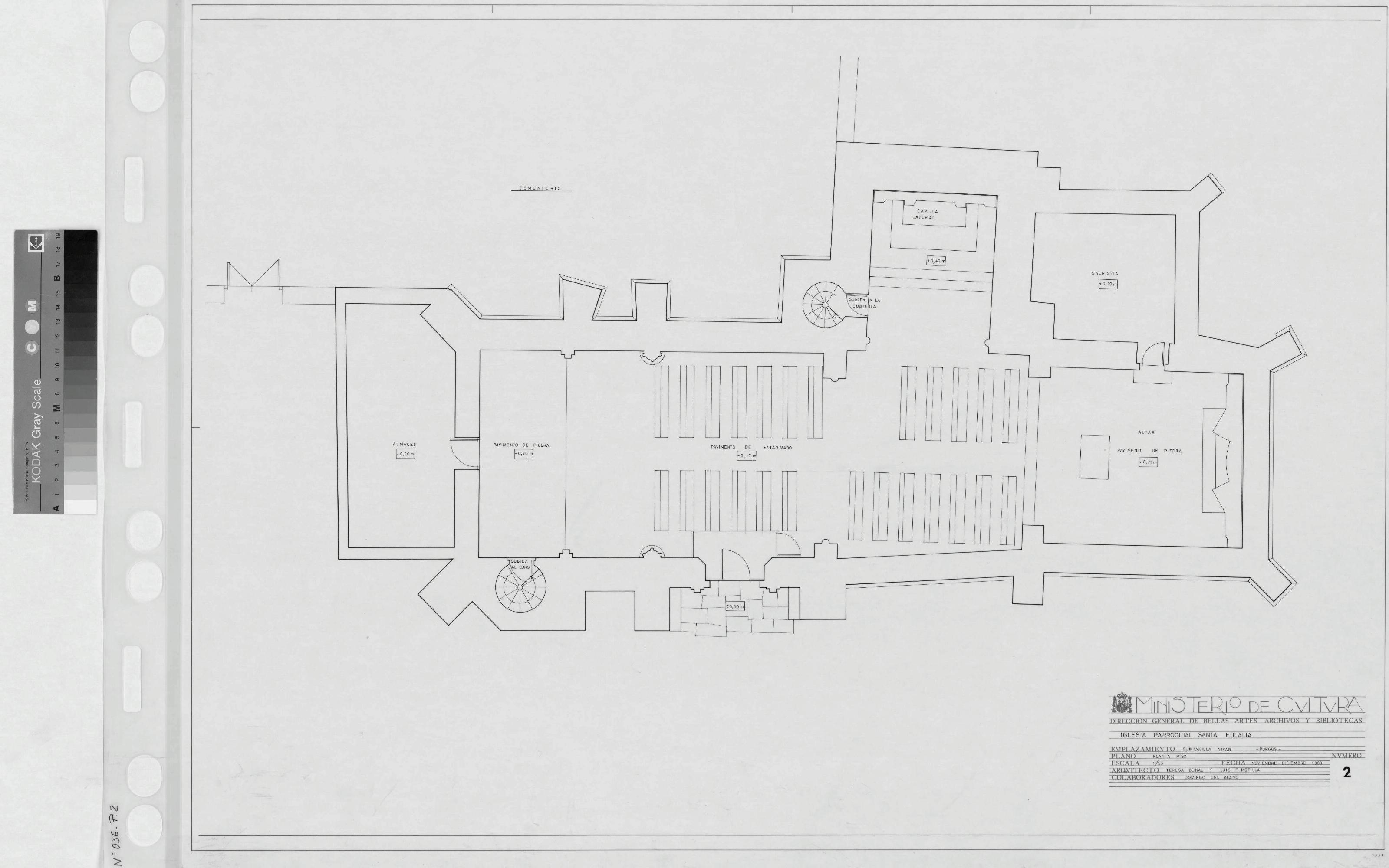 IGLESIA PARROQUIAL SANTA EULALIA -BURGOS -: PLANTA PISO. Plano de distribucion con cotas de altura de las distintas dependencias, Planos realizados por personas contratadas por el INEM.