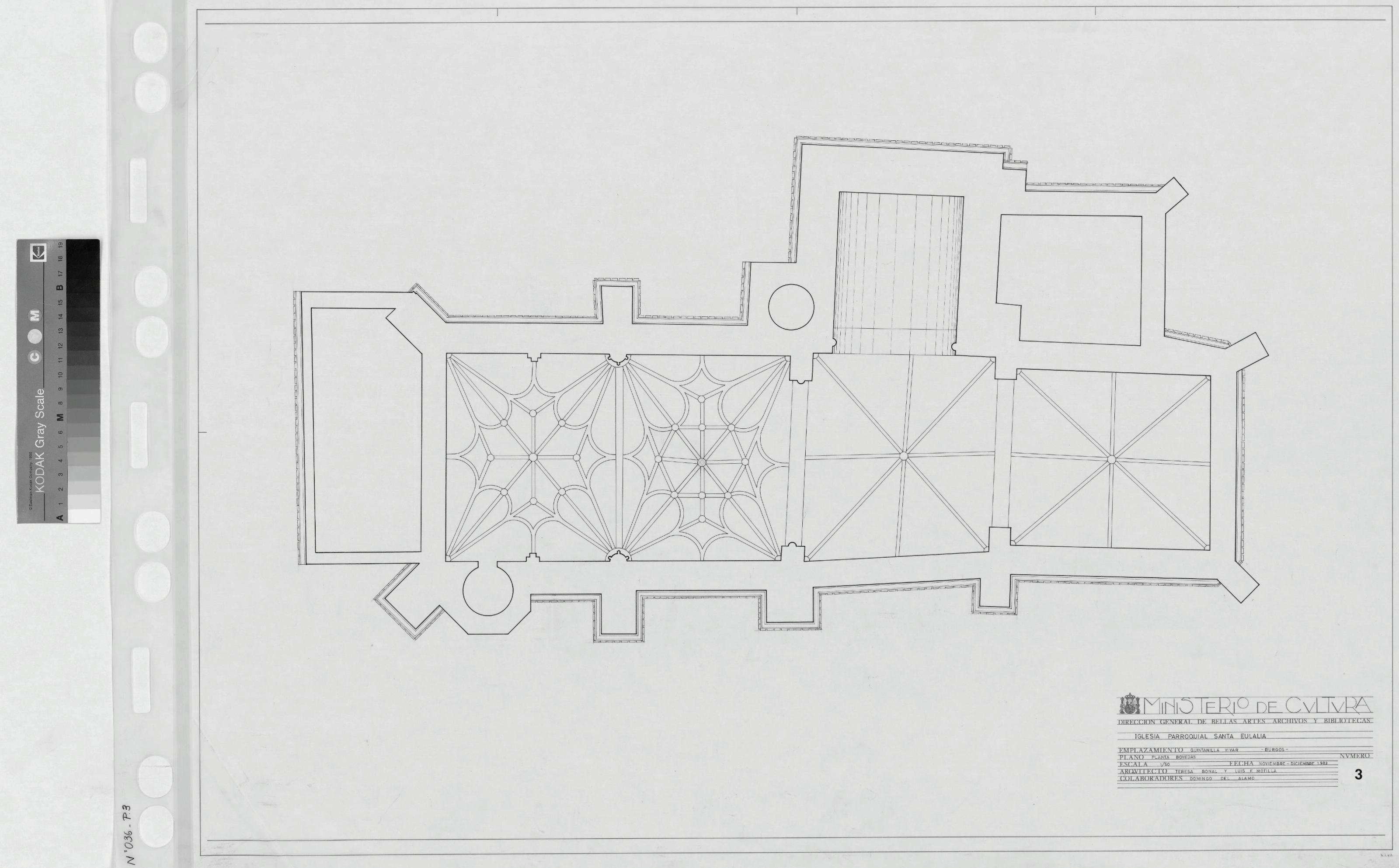 IGLESIA PARROQUIAL SANTA EULALIA -BURGOS -: PLANTA BOVEDAS. Plano con proyeccion de bovedas y techos, Planos realizados por personas contratadas por el INEM.