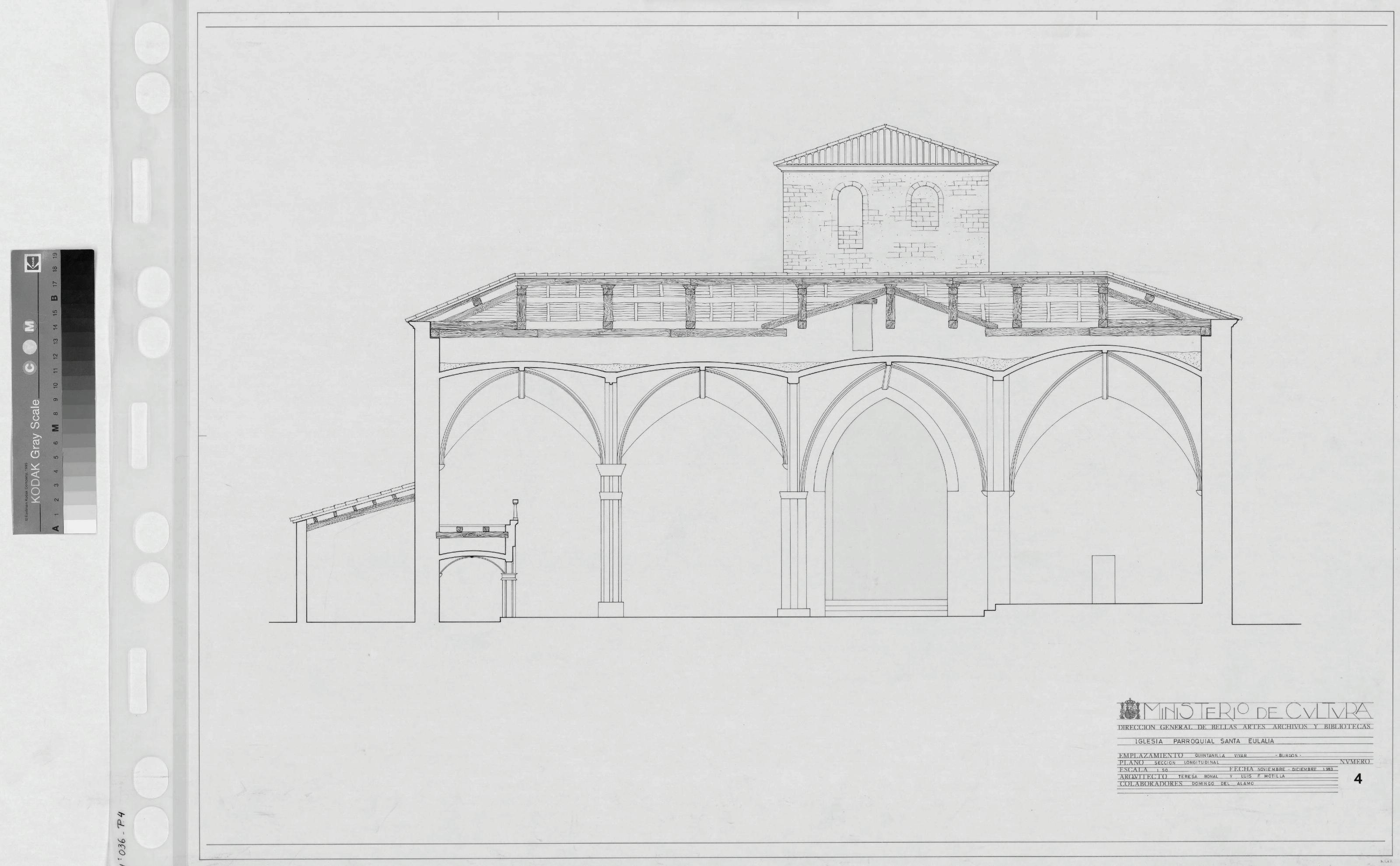 IGLESIA PARROQUIAL SANTA EULALIA -BURGOS -: SECCION LONGITUDINAL. Plano detallado, Planos realizados por personas contratadas por el INEM.