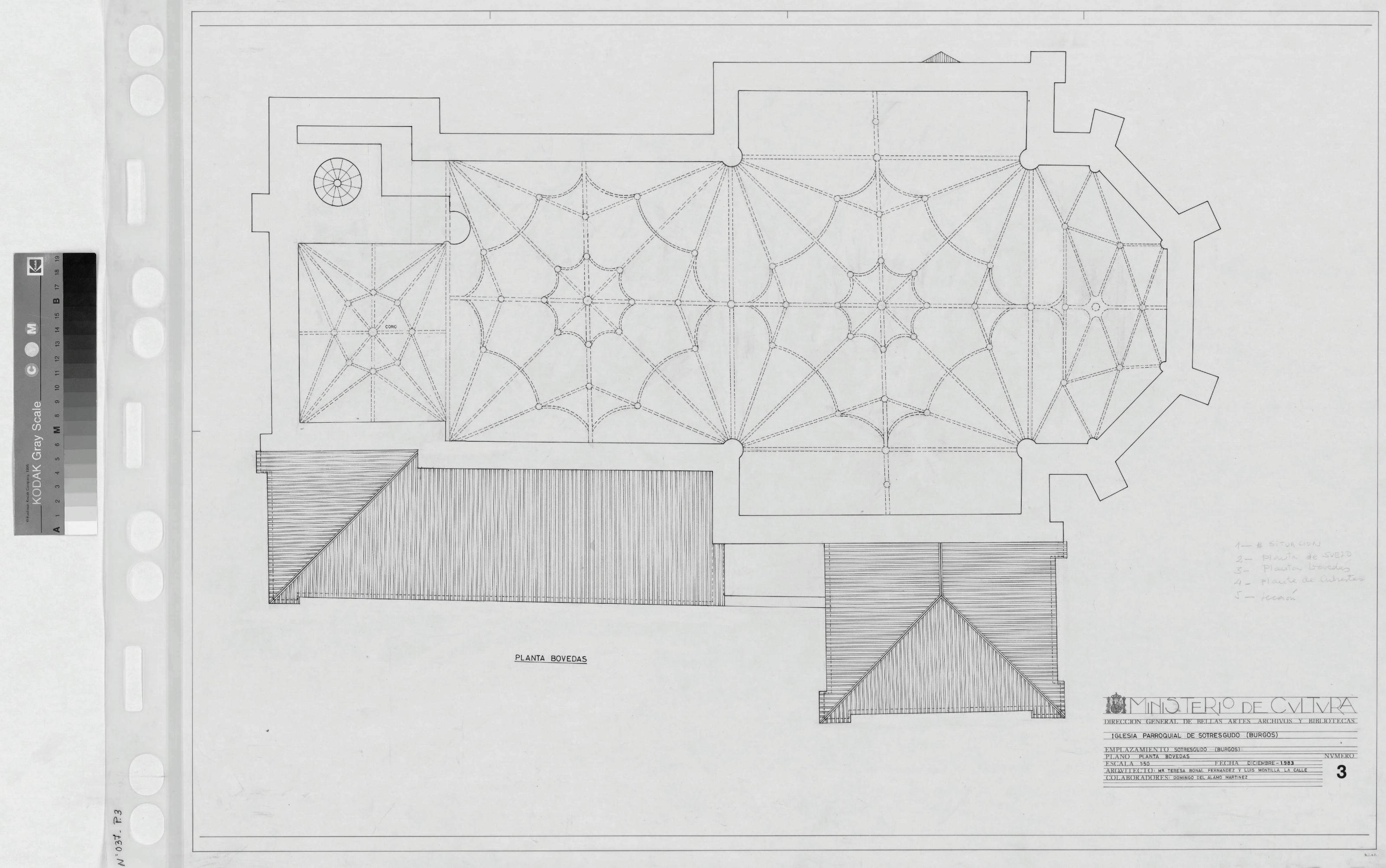 IGLESIA PARROQUIAL DE SOTRESGUDO -BURGOS -: PLANTA DE BOVEDAS Plano detallado, con parte de cubiertas , Planos realizados por personas contratadas por el INEM.