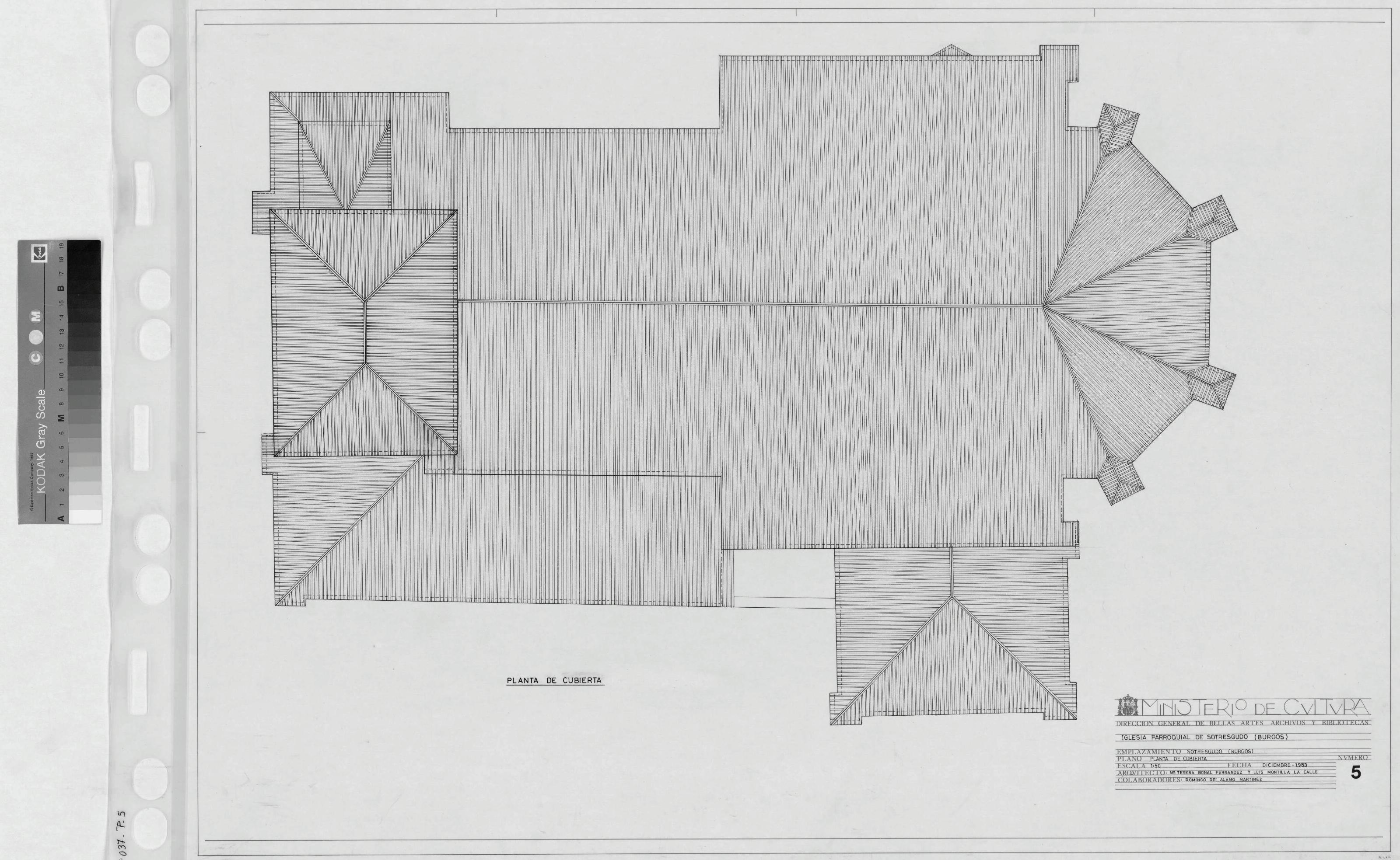 IGLESIA PARROQUIAL DE SOTRESGUDO -BURGOS -: PLANTA DE CUBIERTAS Plano detallado, Planos realizados por personas contratadas por el INEM.