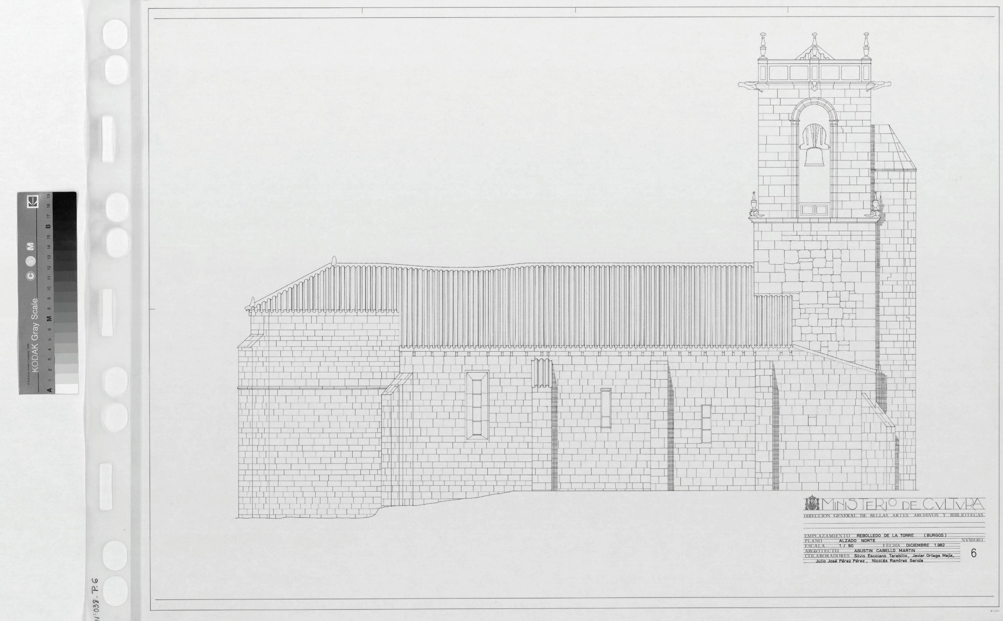 IGLESIA PARROQUIAL DE REBOLLEDO DE LA TORRE -BURGOS -: ALZADO NORTE. Plano dibujado con mucho detallado, Planos realizados por personas contratadas por el INEM.