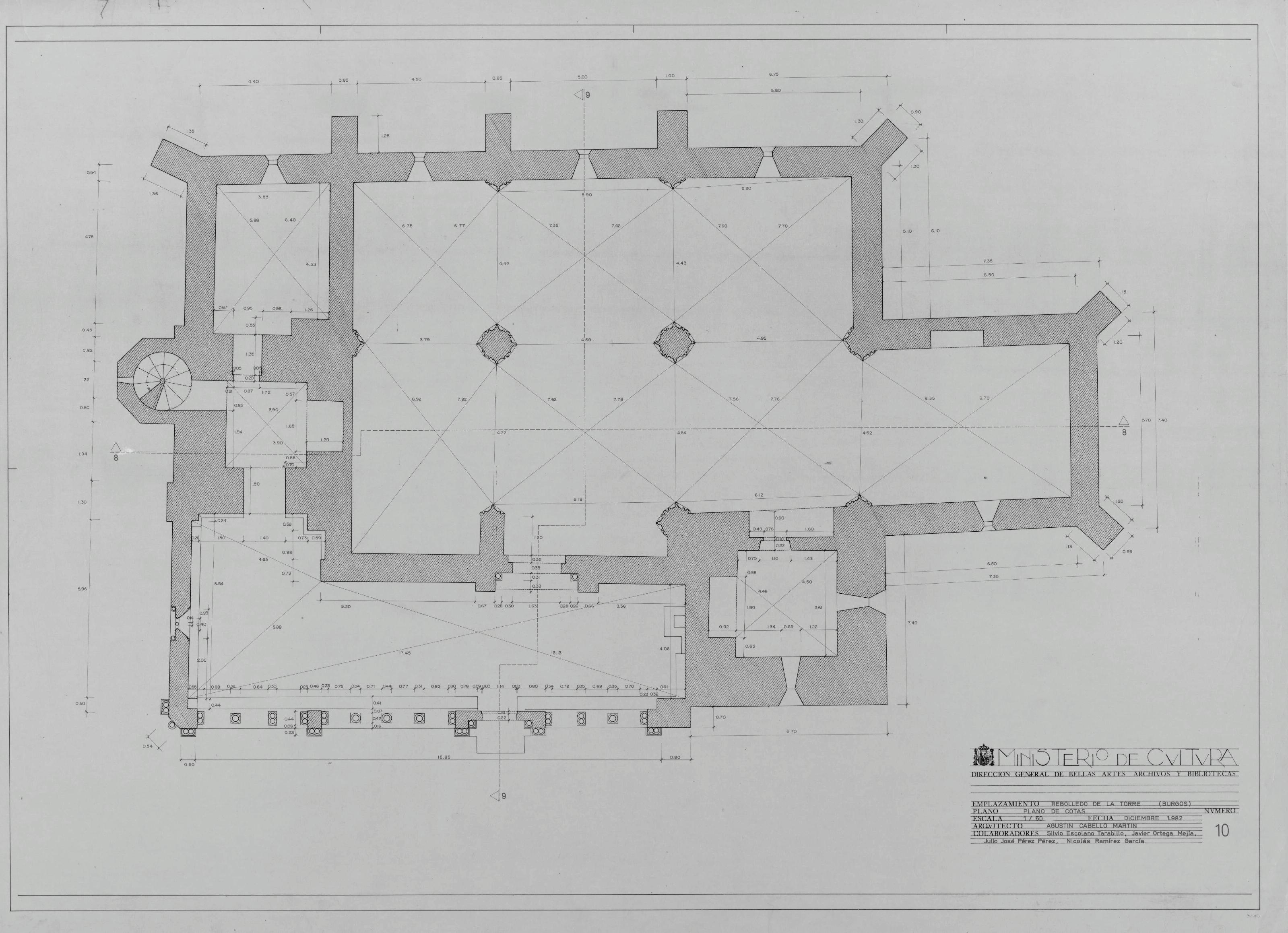 IGLESIA PARROQUIAL DE REBOLLEDO DE LA TORRE -BURGOS -: PLANTA GENERAL DE COTAS. Plano dibujado con mucho detallado, Planos realizados por personas contratadas por el INEM.