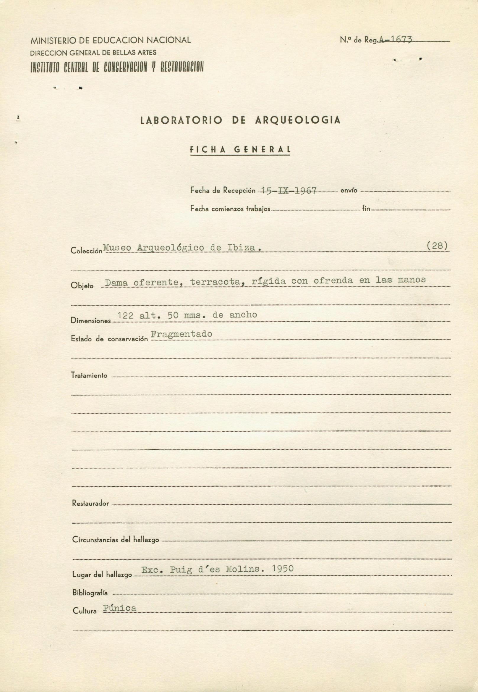 Restauración de las esculturas "damas púnicas" y piezas de cerámica de la colección del yacimiento de Puig d'es Molins, procedentes del Museo Arqueológico de Ibiza
