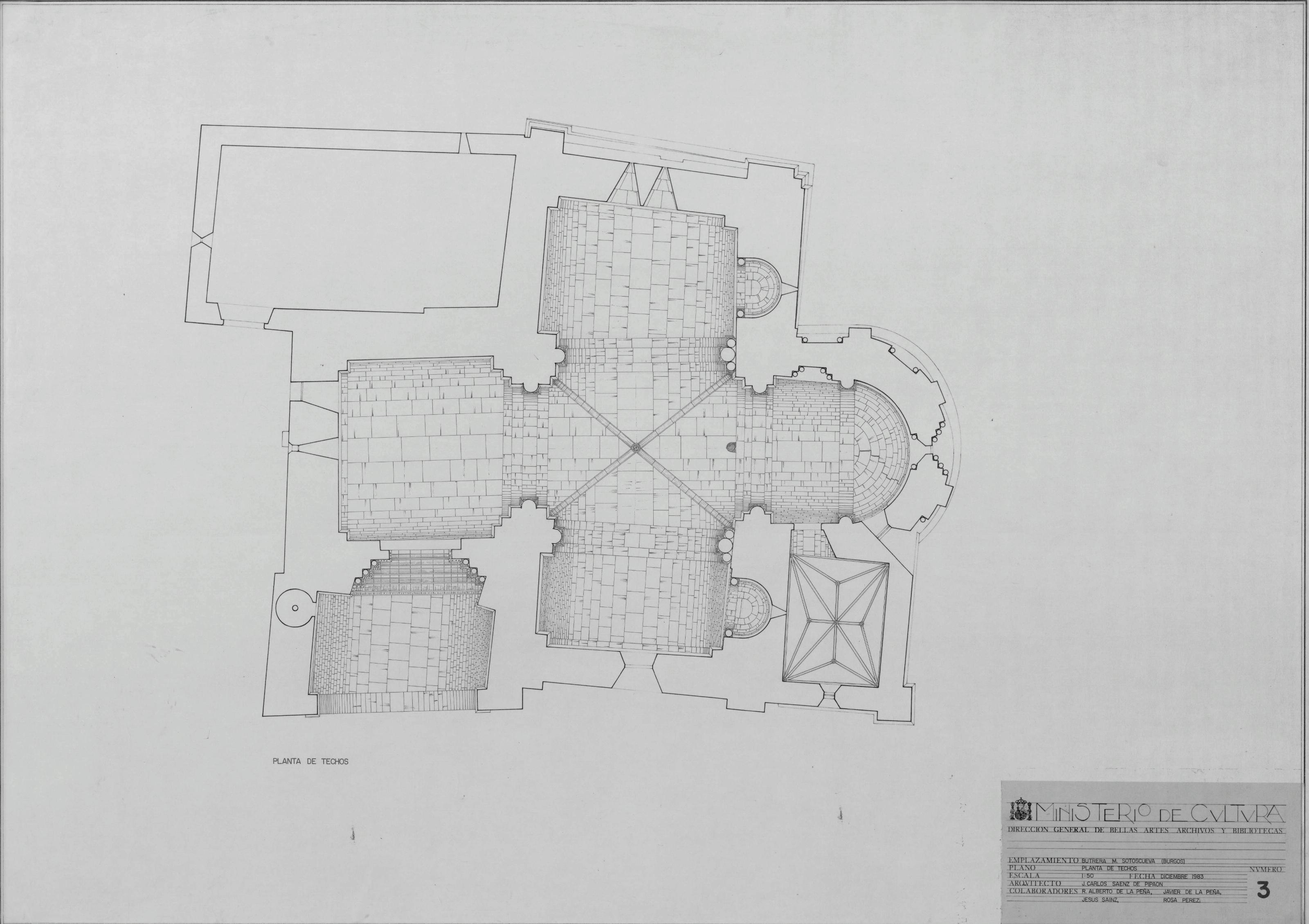ERMITA DE SAN BERNABE -BURGOS-: PLANTA DE TECHOS . Planta de la Ermita con proyeccion de tehos y bovedas, plano sin cotas.Estos planos estan realizados por personas contratadas por el INEM.