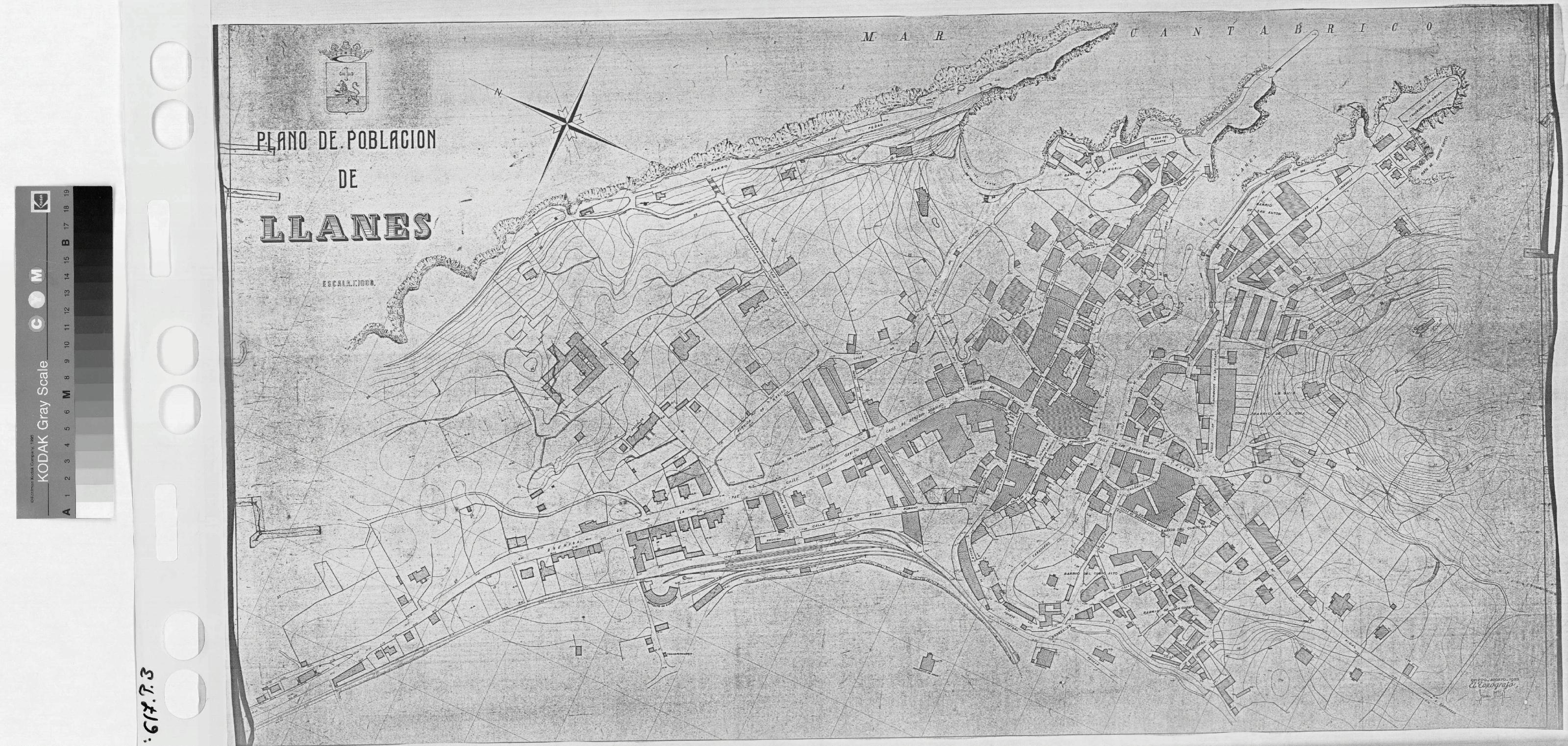 CONJUNTO HISTORICO ARTISTICO DE LLANES: PLANTA GENERAL DEL CONJUNTO HISTORICO ARTISTICO , CON EDIFICACIONES RAYADAS COTAS DE DESNIVEL Y NOMENCLATURA DE VIARIO