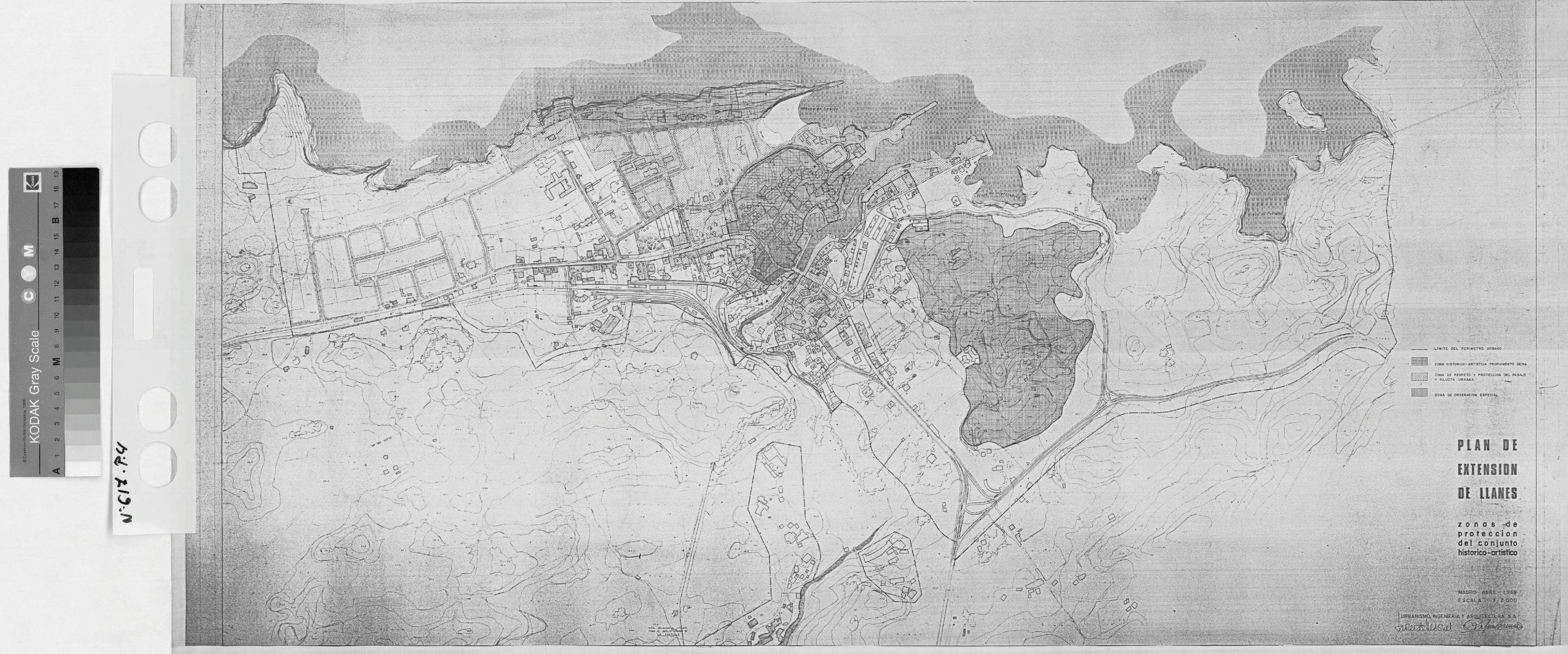 CONJUNTO HISTORICO ARTISTICO DE LLANES: PLANTA GENERAL DEL CONJUNTO HISTORICO ARTISTICO , CON DELIMITACION DEL PERIMETRO URBANO Y ZONA DEDICADA AL PLAN DE EXTENSION DE LLANES
