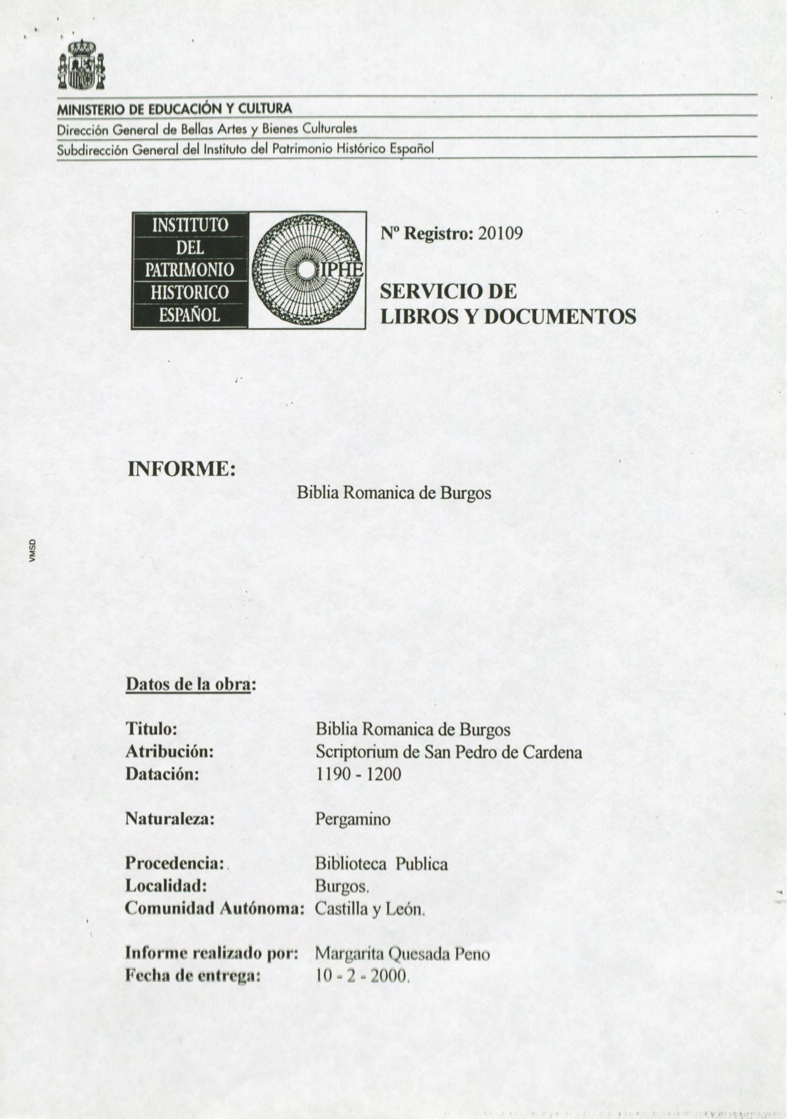 Restauración de la biblia románica del scriptorium de San Pedro de Cárdena, procedente de la Biblioteca Pública de Burgos