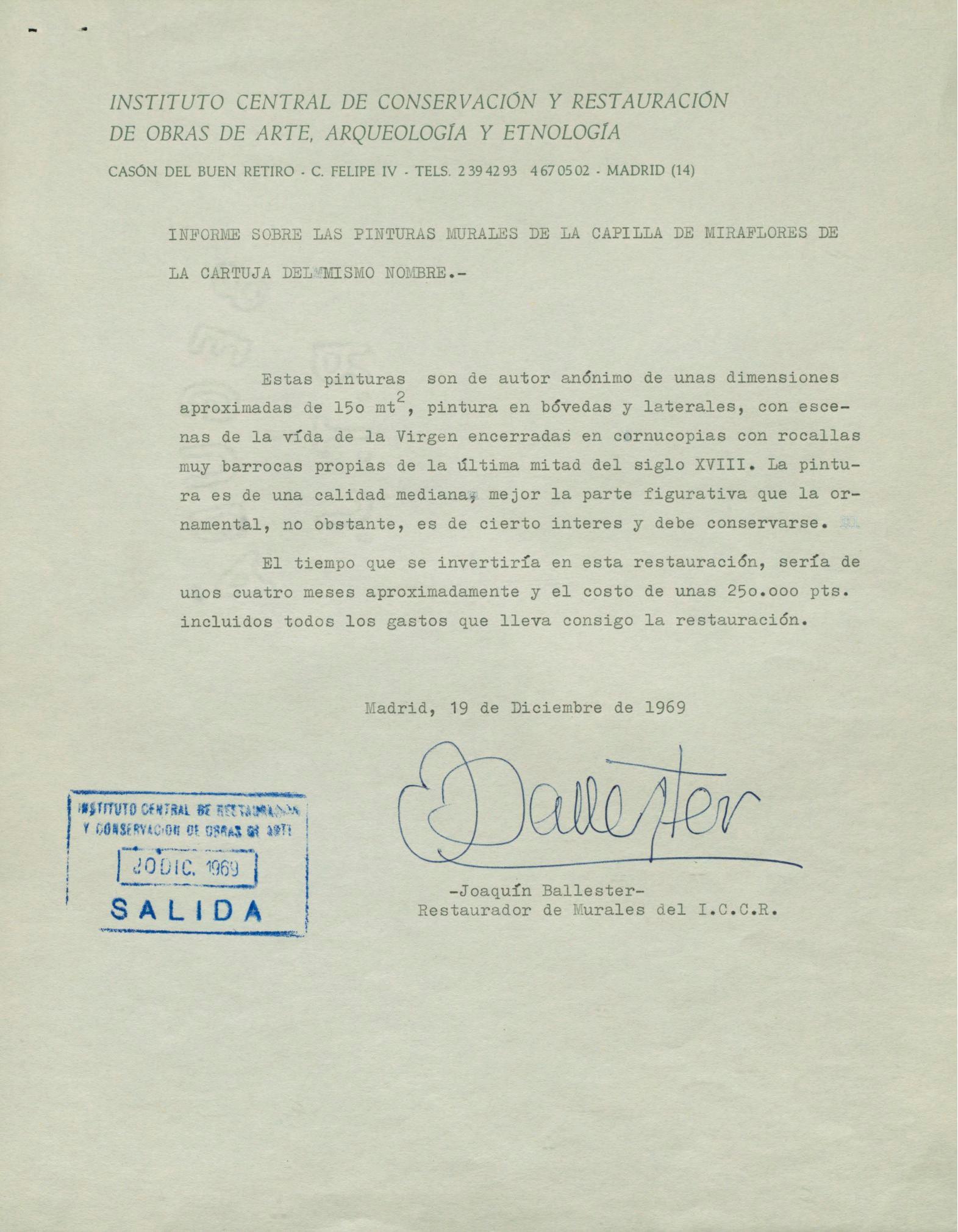 Informe de conservación de las pinturas murales de la capilla de la Cartuja de Miraflores (Burgos)