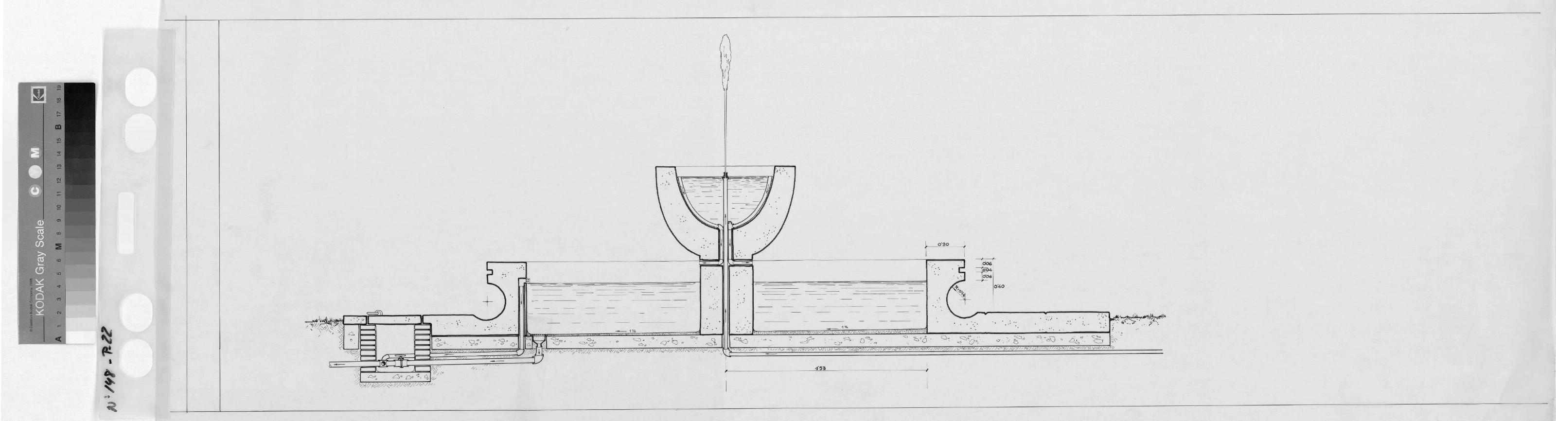 MONASTERIO DE SILOS. -BURGOS-: SECCION. PATIO DEL CLAUSTRO.Detalle saneamiento de la fuente y estanque del patio, dibujo con cotas, plano sin documentacion.