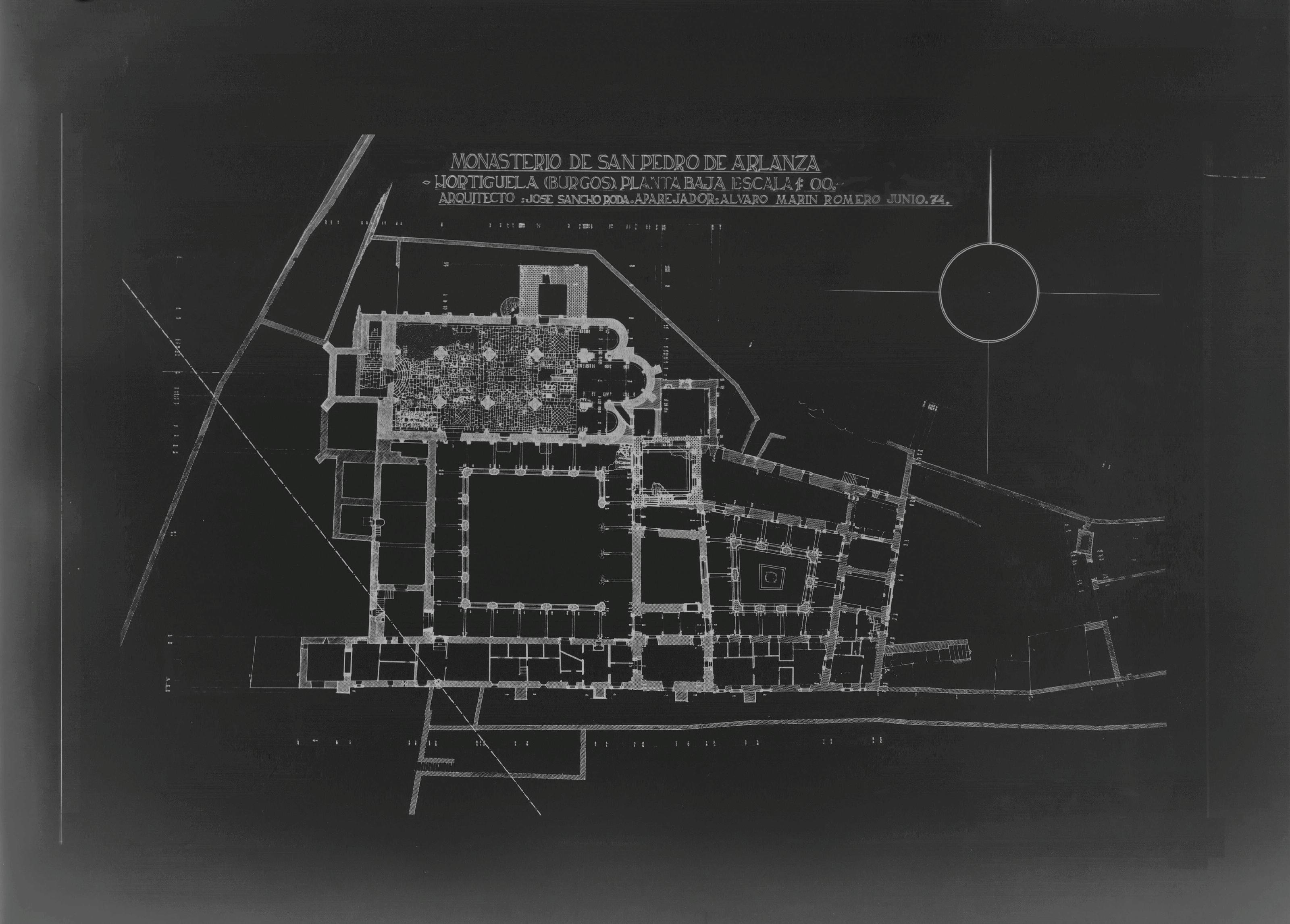 MONASTERIO DE SAN PEDRO DE ARLANZA . BURGOS.: PLANTA BAJA . Plano reducido,reproducible fotografico en negativo , sin cotas.