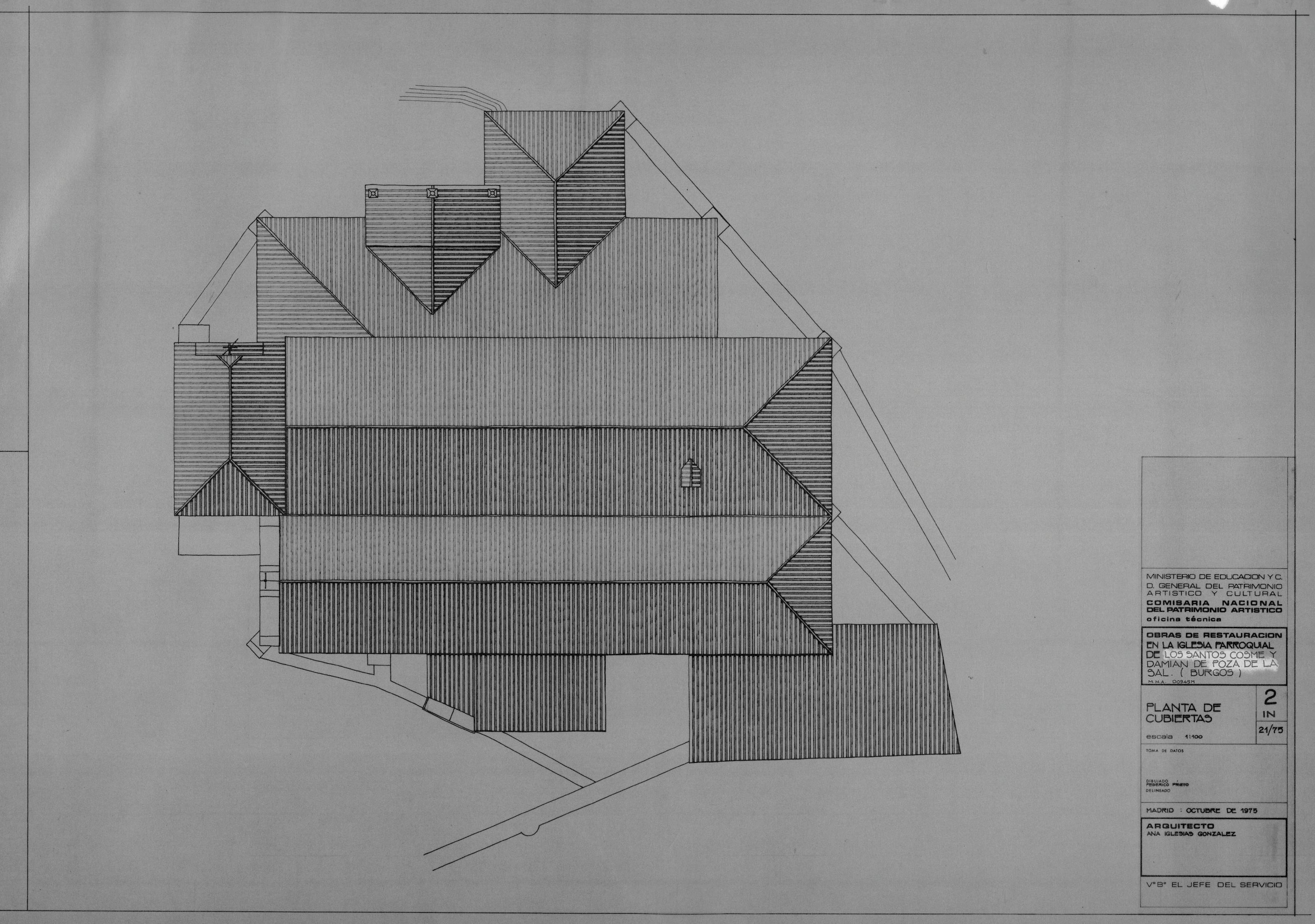 IGLESIA PARROQUIAL DE SAN COSME Y SAN DAMIAN. -BURGOS -: PLANTA DE CUBIERTAS. Planta cubierta estado inicial , plano sin acotar.
