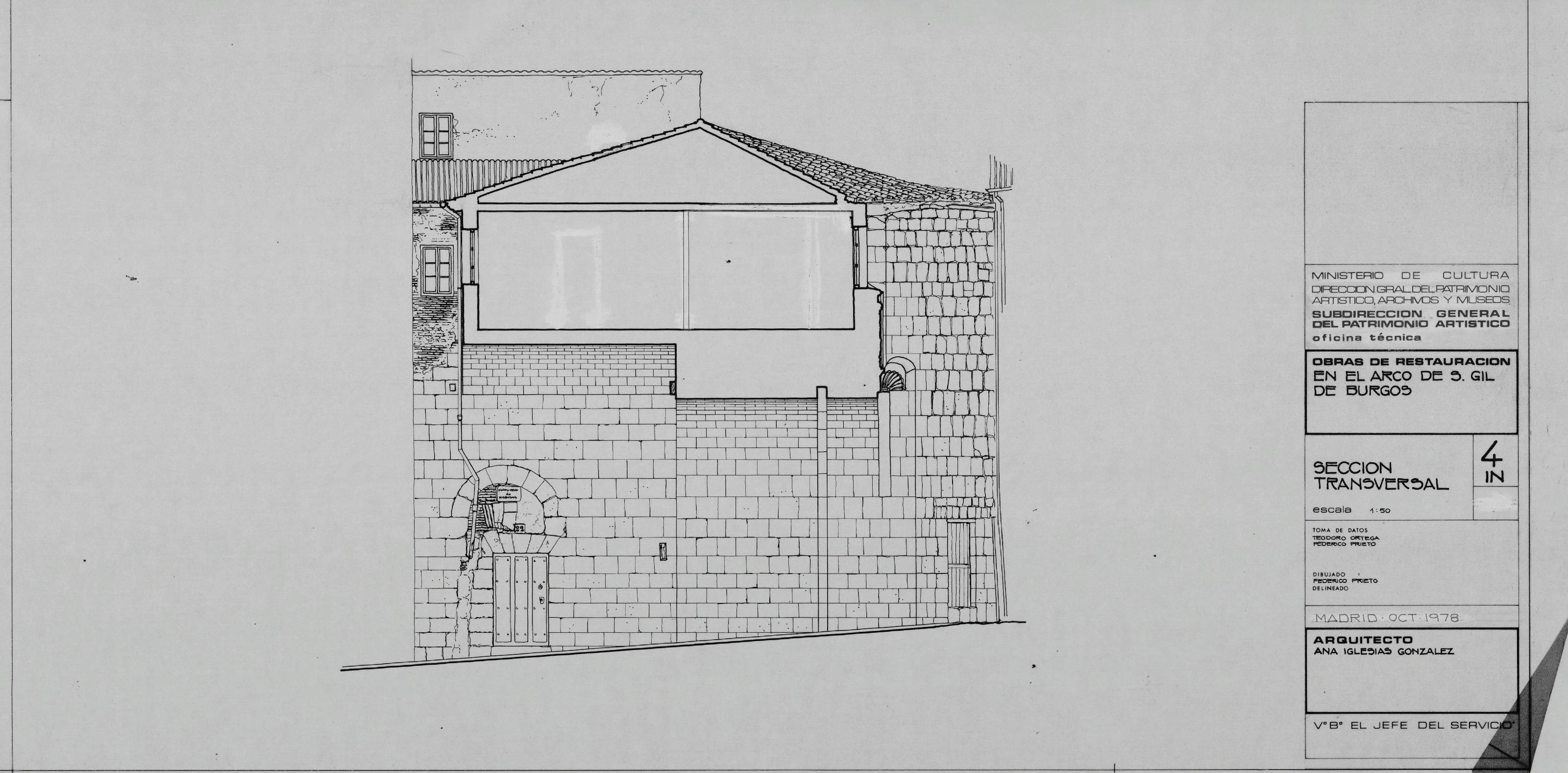 ARCO DE SAN GIL. -BURGOS-: ALZADO-SECCION. Plano sin cotas y sin mas documentacion.