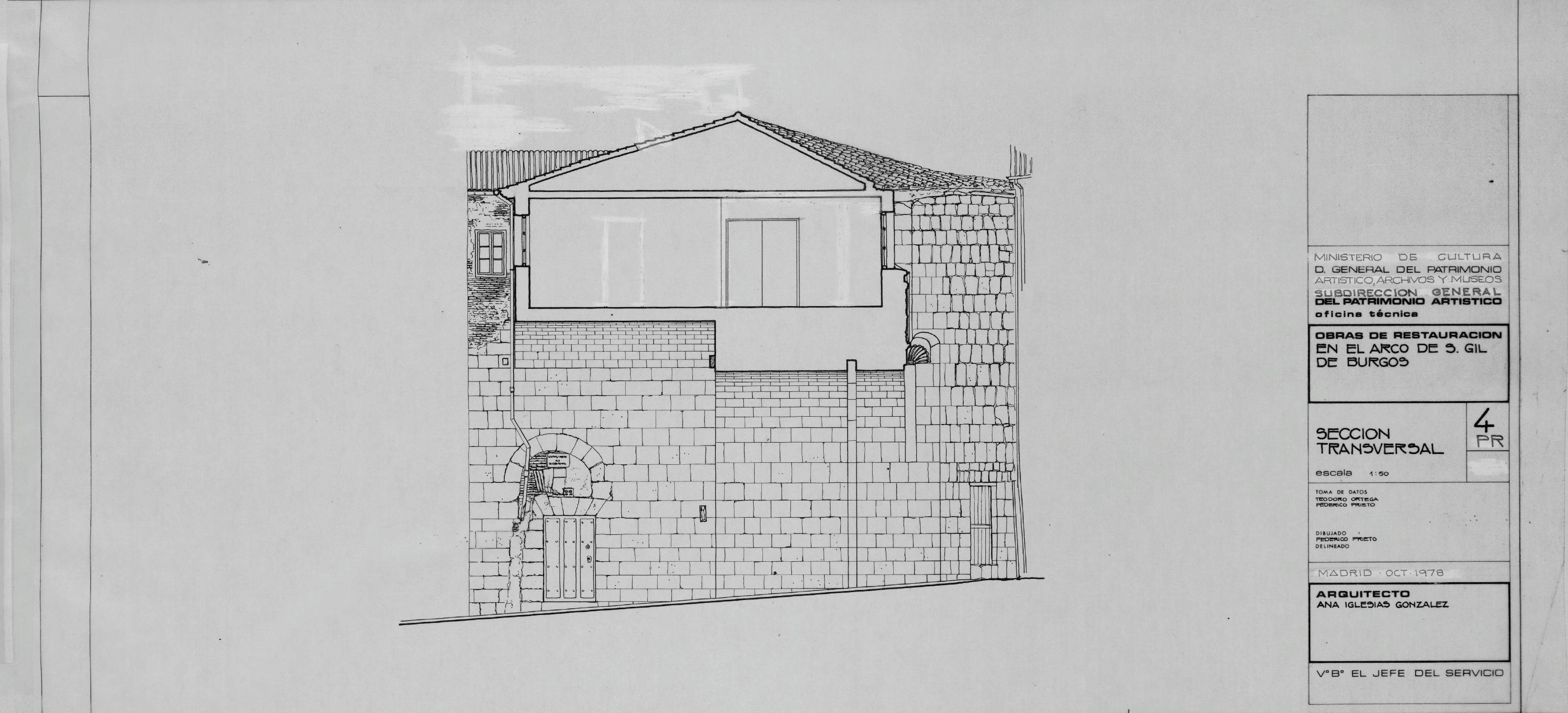 ARCO DE SAN GIL. -BURGOS-: SECCION TRANSVERSAL. En este plano esta modificado la planta segunda Plano sin cotas.