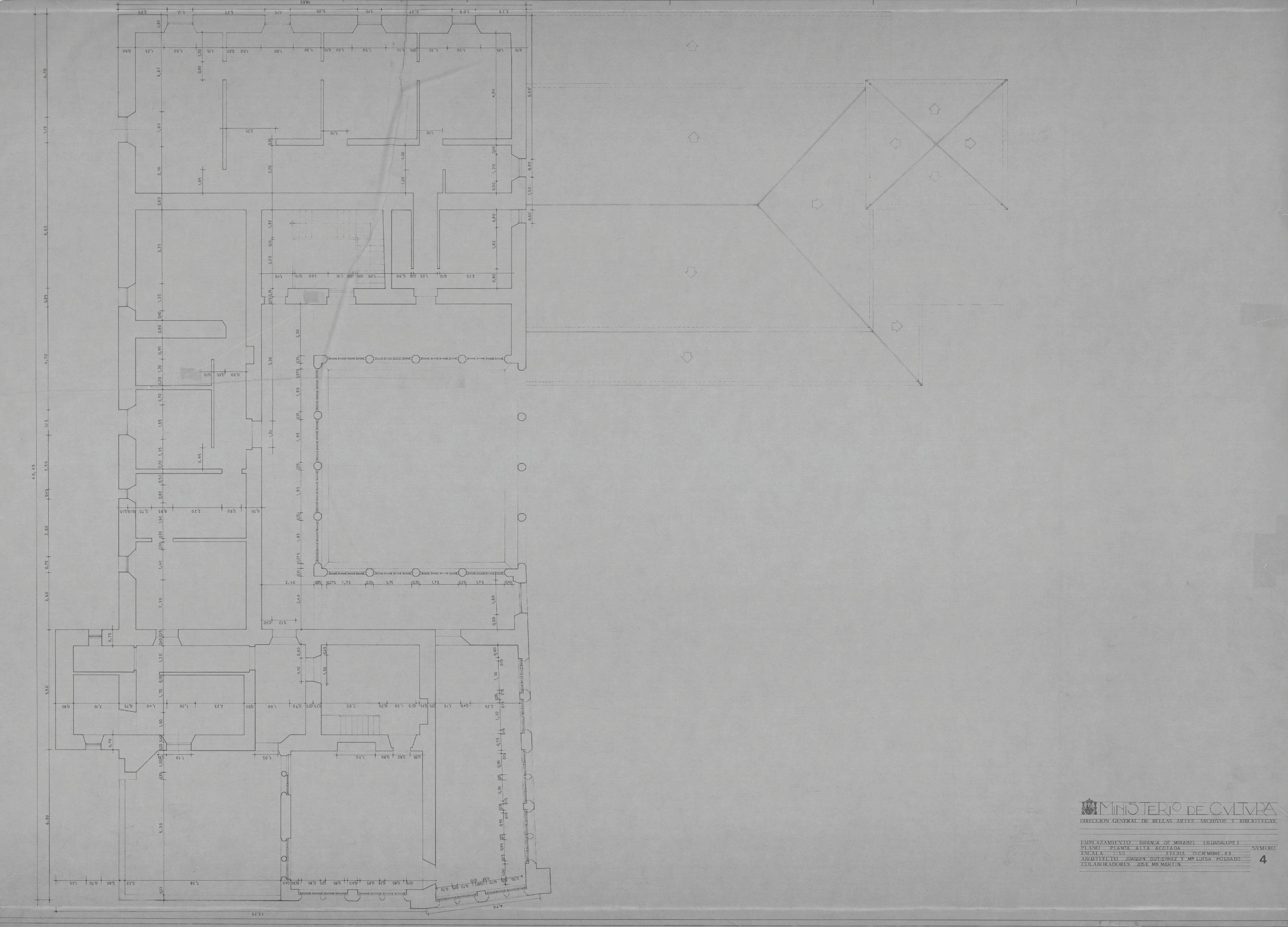 GRANJA DE MIRABEL: PLANTA ALTA CUBIERTAS. PLANO SIN DENOMINACION DE USUS CON COTAS. PLANO REALIZADO POR PERSONAL CONTRATADO POR EL INEM.
