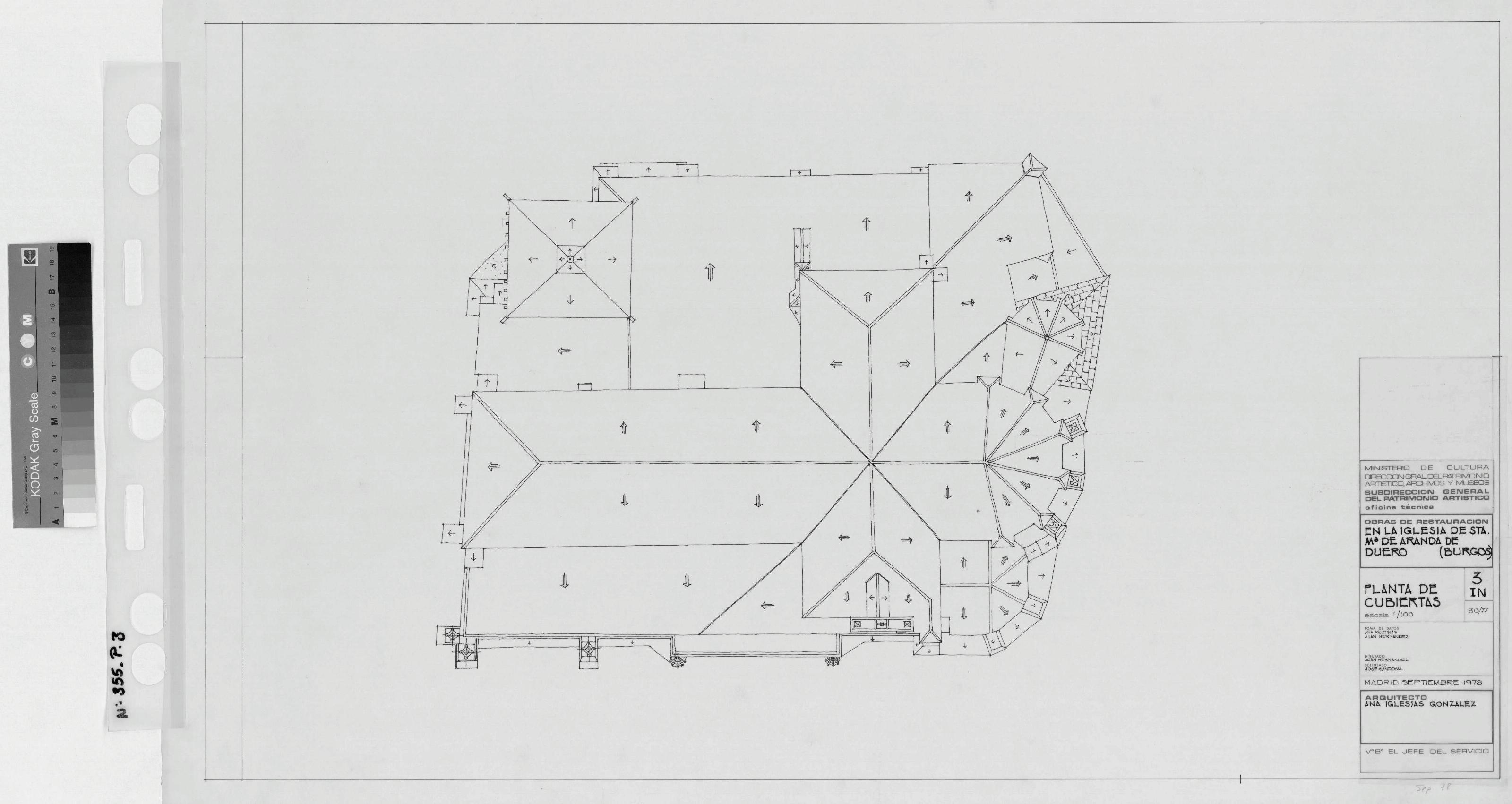 IGLESIA DE SANTA MARIA. BURGOS.: PLANTA DE CUBIERTAS. Planta de cubiertas, dibujada con todas las limas , caballetes y pendientes de aguas. plano sin cotas.